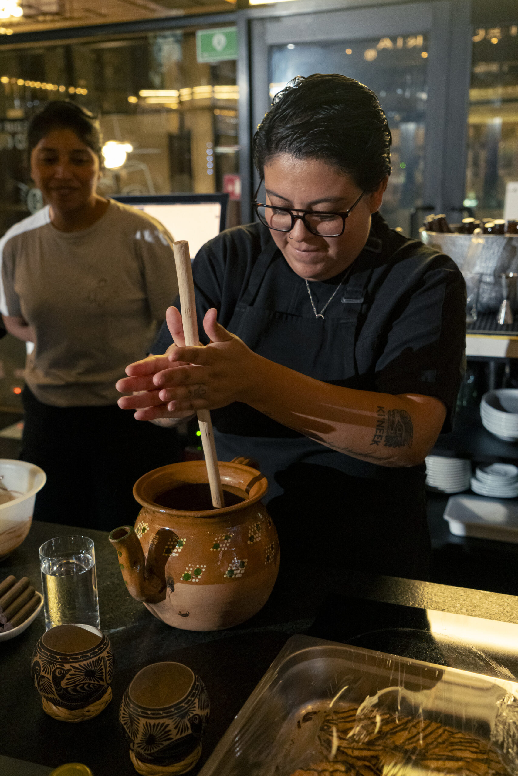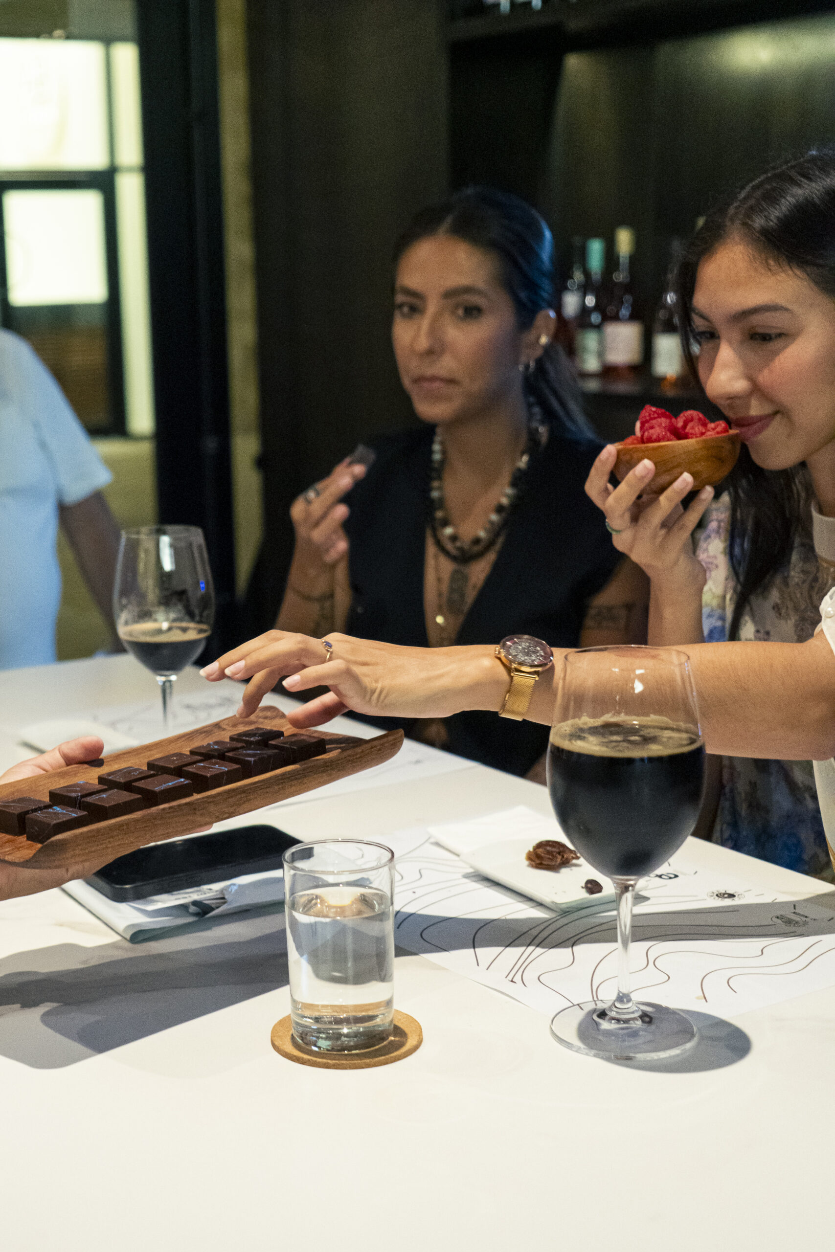 El maridaje ideado por la sommelier Carolina Martínez Hobart llevó la experiencia más allá del gusto, hilando bebidas como la Cerveza Lágrimas Negras Imperial Cacao Stout, el Vermouth Valdespino de Jerez de la Frontera y el Mezcal Herencia Noble de maguey cenizo con frutos rojos, entre otras selecciones que sorprendieron por su carácter y equilibrio.