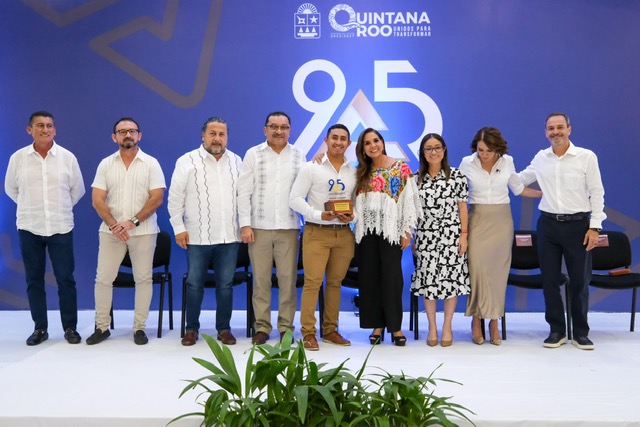 Durante el evento, el presidente de la Canaco Servytur Chetumal, Amir Efrén Padilla Espadas, entregó a la titular del Ejecutivo un reconocimiento por las gestiones realizadas a lo largo de su administración, como la renovación y el decreto de la Zona Libre de Chetumal, la apertura del parque Yum Kaax, la inauguración del parque Quintana Roo, el esperado fortalecimiento del Recinto Fiscal Estratégico, la apertura del aeropuerto Tulum que impulsa el turismo hacia esta zona, la Puerta al Mar en Felipe Carrillo Puerto y por supuesto, la llegada del tren Maya junto con su estación de pasajeros y de carga.