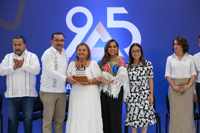 Chetumal.- En el aniversario 95 de la Cámara Nacional de Comercio, Servicios y Turismo (Canaco Servytur) de Chetumal, la institución empresarial más antigua de Quintana Roo, la gobernadora Mara Lezama refrendó su compromiso de seguir trabajando 24/7 para devolver el brillo a la capital, con un gobierno honesto, transparente, que combate la corrupción y cree en su gente.