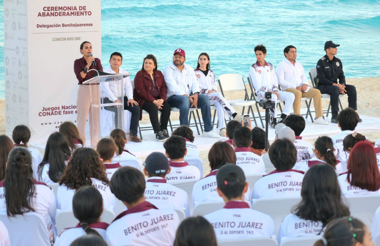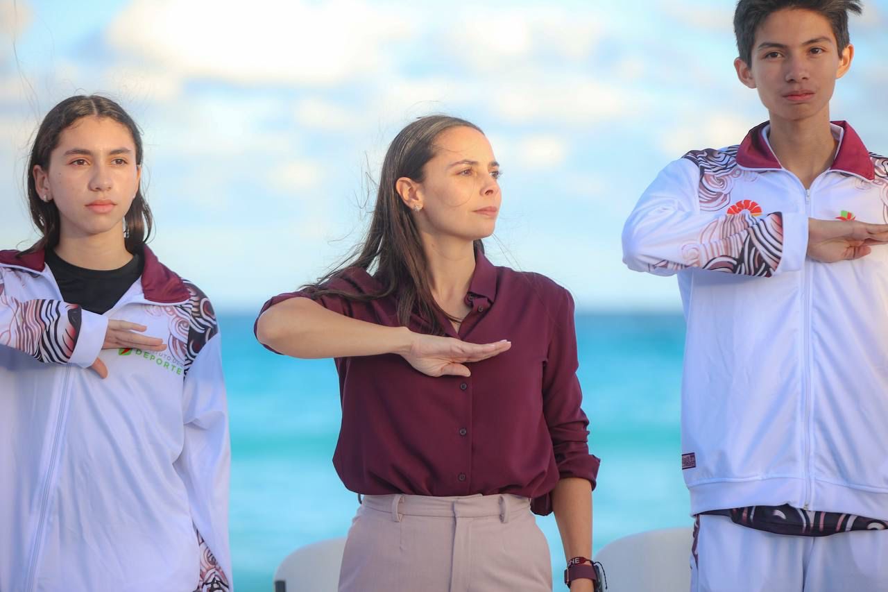 “Junto con este banderín, hoy refrendo mi compromiso con ustedes y con todos los deportistas de seguir trabajando sin descanso para darles uniformes, equipo y las mejores instalaciones para que se preparen. Ustedes sólo ocúpense de echarle ganas, de dejar el corazón en cada competencia, de seguir demostrando que Cancún ¡es tierra de campeones!”, destacó.