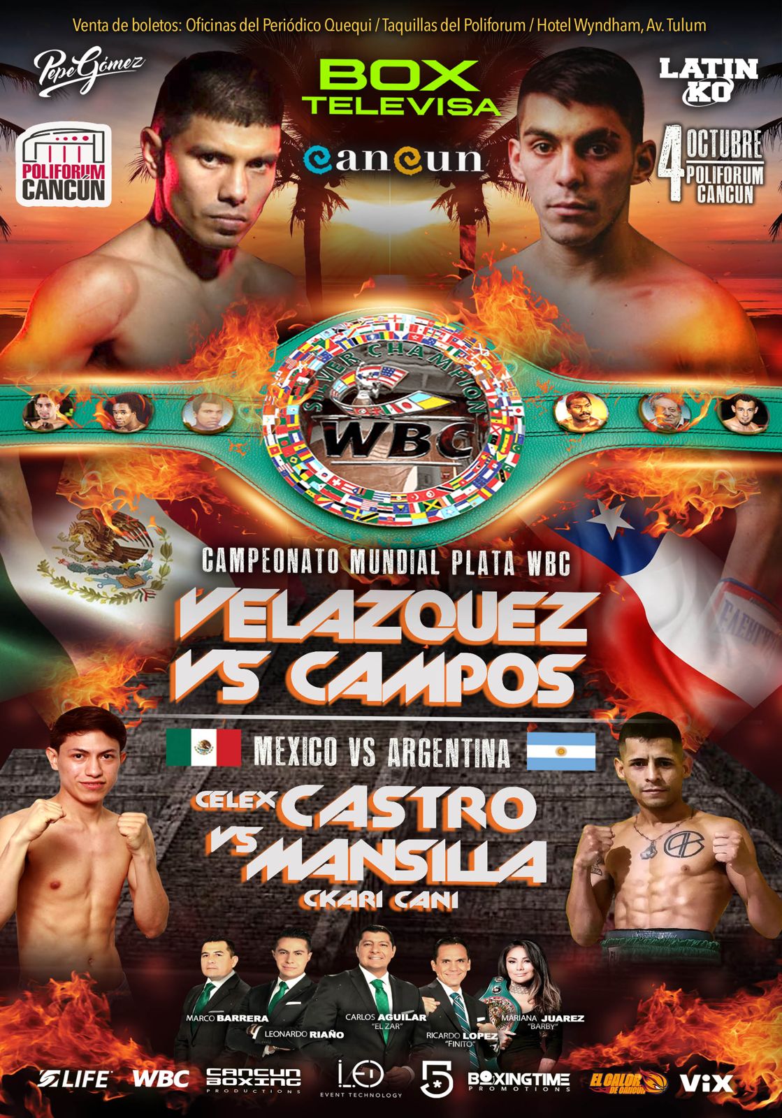 Las acciones serán narradas por Carlos “Zar” Aguilar, Leonardo Riaño, y por los ex campeones mundiales Ricardo “Finito” López, Marco Antonio “Barreta” Barrera y Mariana “Barby” Juárez.