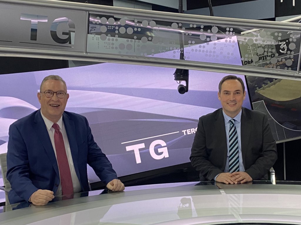 Ciudad de México.- El director general del Grupo Editorial Latitud 21, Amador Gutiérrez Guigui, visita el foro televisivo del programa de análisis y opinión denominado Tercer Grado Deportivo en Televisa Chapultepec, bajo la invitación del periodista y director editorial de TUDN, Francisco Javier González.