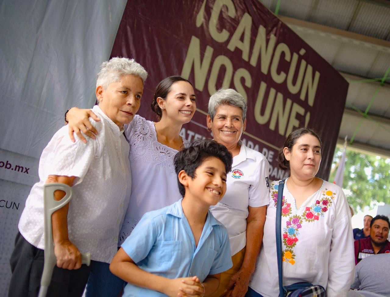En un momento emotivo, el señor Antonio Nava, un adulto mayor de 82 años de edad con discapacidad visual le recitó un poema, narrando los acontecimientos que se han vivido en Cancún como los huracanes Gilberto y Wilma, la fuerza turística del destino y agradeciéndole los apoyos sociales que recibe por parte de los tres órdenes de gobierno.