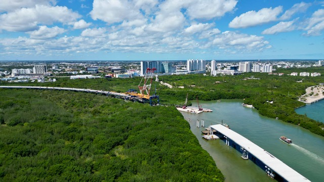 Cancún.- La construcción del puente vehicular Nichupté tiene un avance físico del 74.60%, que representa 6.40 kilómetros de un total de 8.8, de tres carriles, 2 de circulación y 1 reversible; dos entronques, 1 ciclovía y sistema de iluminación, anunció la gobernadora Mara Lezama.