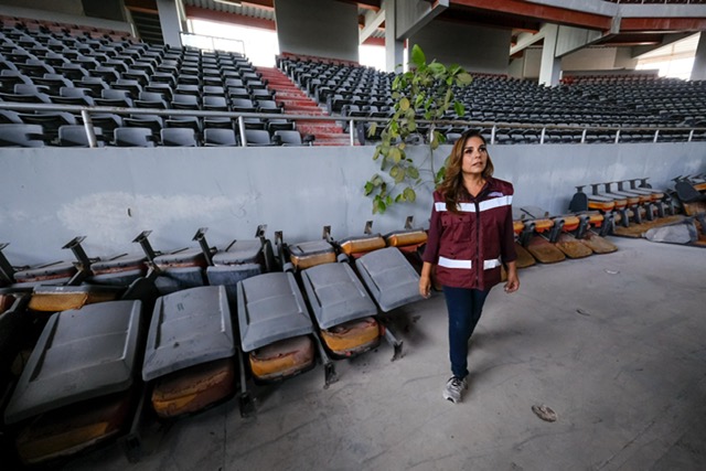“Esta, que fue una obra que se realizó con dinero del pueblo terminó olvidada por años; un auditorio mal hecho en los procesos constructivos y con materiales de baja calidad, lo que debían ser paredes sólidas era simple tablarroca, sin las condiciones mínimas de seguridad, un riesgo inminente para la gente, será transformada” explicó la Gobernadora.