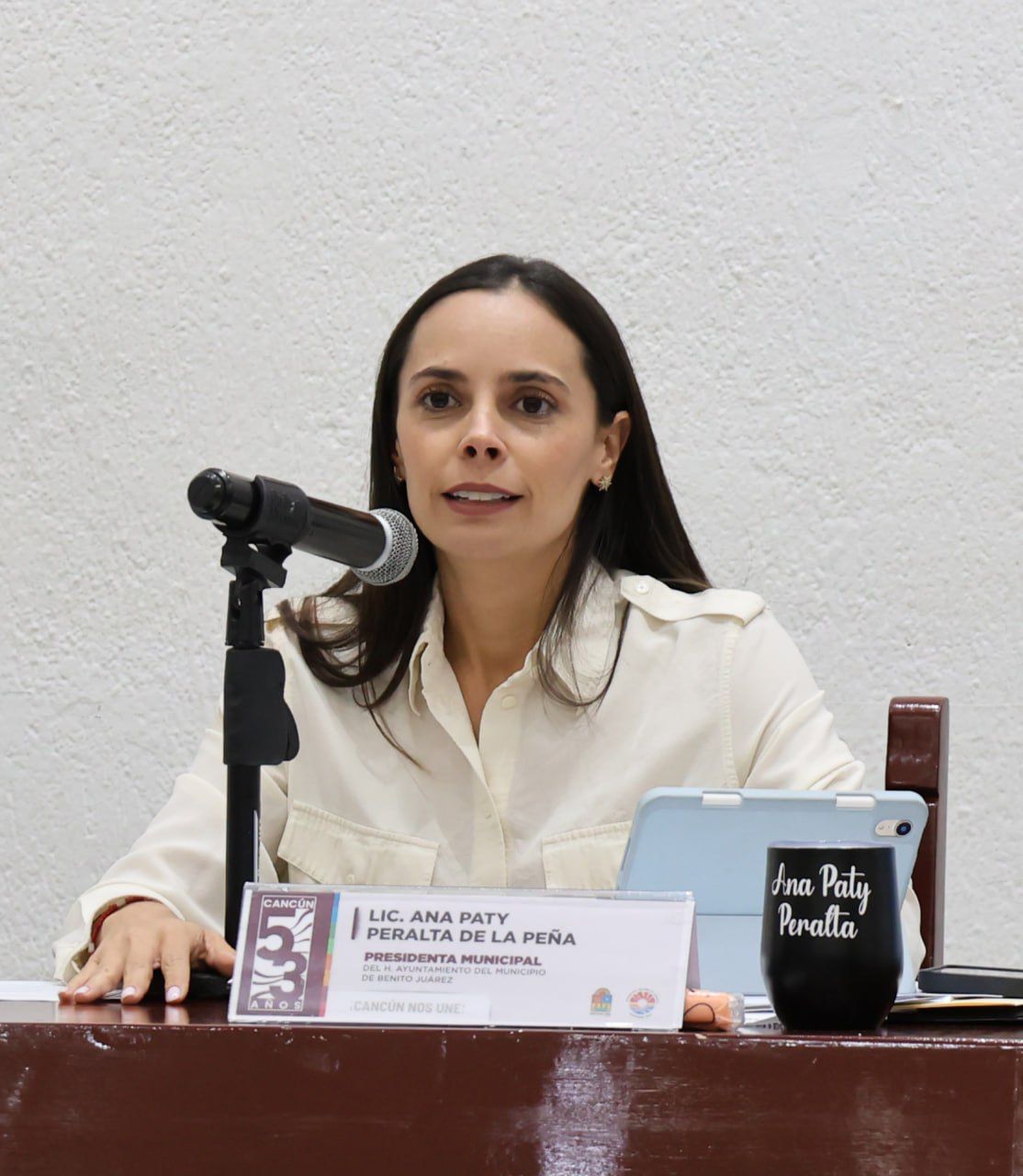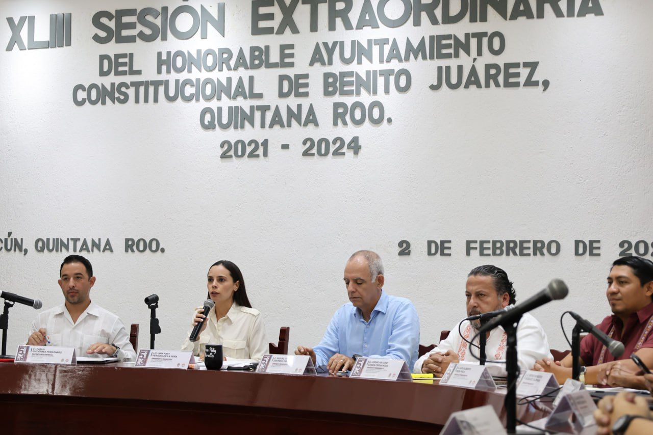En la Sala “20 de abril”, durante la Cuadragésima Tercera Sesión Extraordinaria la Presidenta Municipal, Ana Paty Peralta, destacó que se contemplan recursos para proyectos de repavimentación de arterias principales, como Tules, Chac Mool, Galaxias del Sol, por mencionar algunas, que forman parte de la transformación de Cancún.