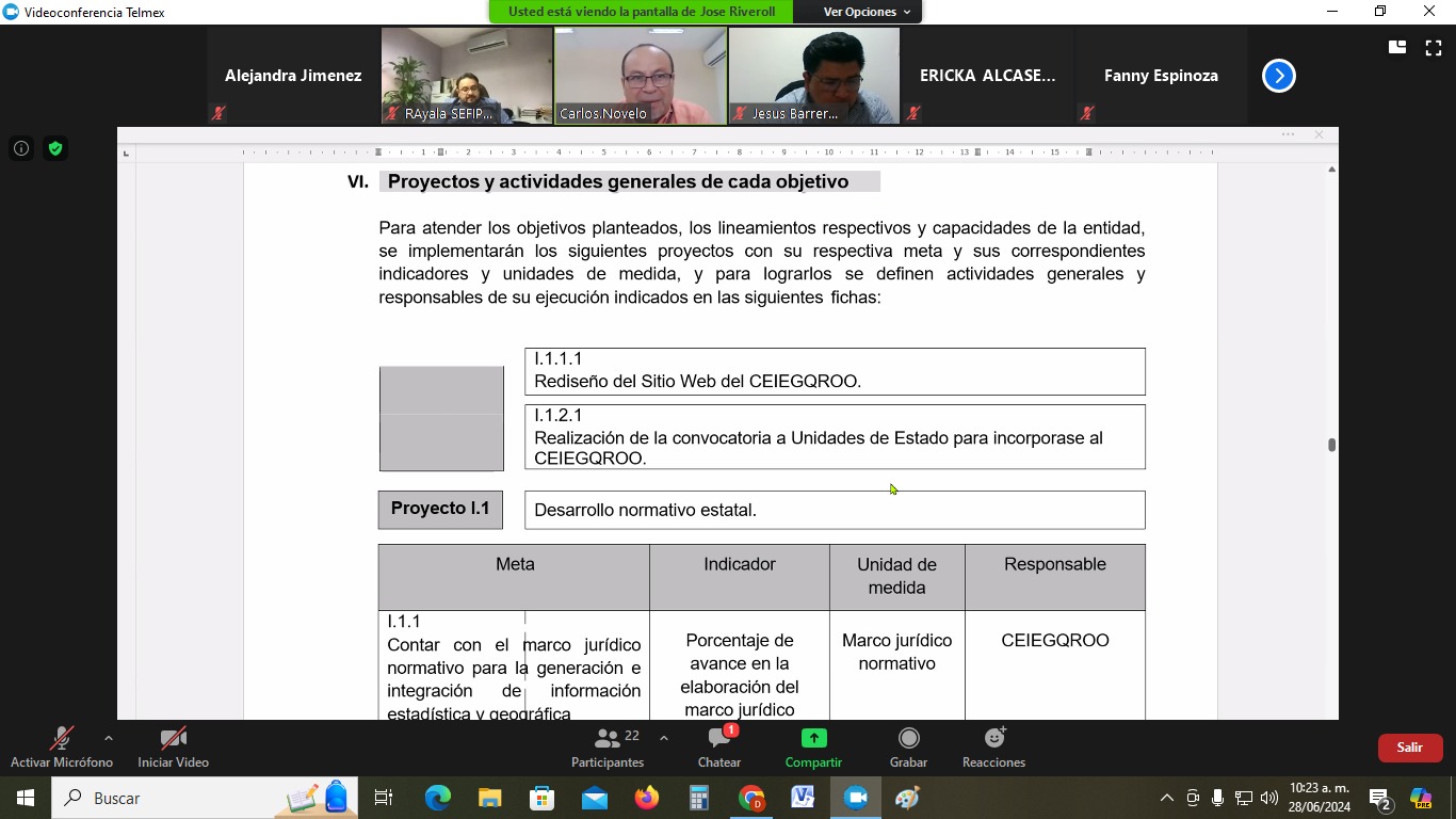 Por su parte, Carlos Fernando Novelo Vela, Coordinador Estatal del Instituto Nacional de Estadística y Geografía (INEGI) en Quintana Roo, realizó la presentación del Programa Estatal de Estadística y Geografía, señalando los proyectos incluidos.