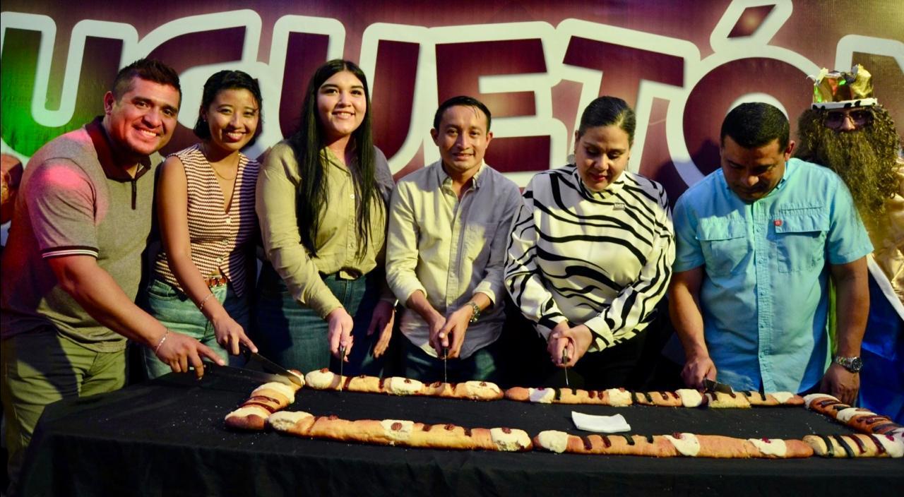 Todos los presentes disfrutaron de una deliciosa rosca de 40 metros, elaborada por los estudiantes de la carrera de gastronomía de la UNID, y donada por la rectora de esta casa de estudios, la maestra Corina Chavira.