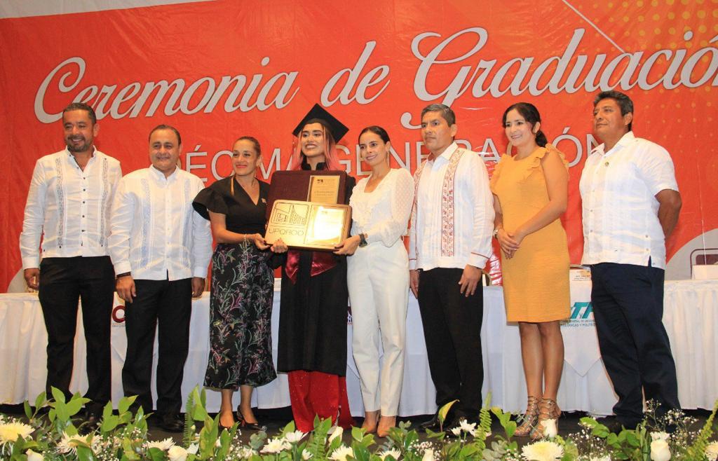 Para enmarcar el emotivo momento, la Presidenta Municipal fue parte de la entrega de los certificados correspondientes a los egresados de las ingenierías en Biotecnología, Software, Financiera, Biomédica así como Administración y Gestión Empresaria, además de la licenciatura en Terapia Física, así como en los reconocimientos a los alumnos con mejor promedio de cada carrera.