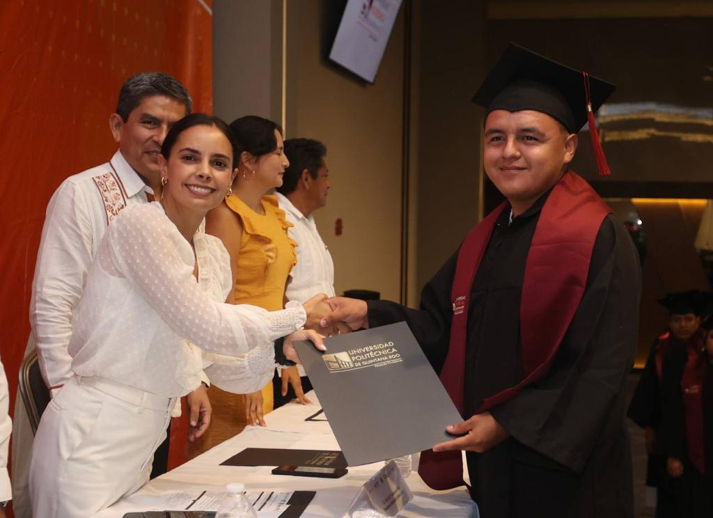 Cancún, Q. R., a 01 de junio de 2023.- Con una gran sonrisa, muy contenta y en un ambiente de fiesta, la Presidenta Municipal, Ana Paty Peralta, participó en la ceremonia de graduación de la generación 2019-2022 de la Universidad Politécnica de Quintana Roo, la décima en su historia, en la cual destacó el esfuerzo, disciplina y responsabilidad por alcanzar una meta de los 170 jóvenes de varias especialidades que culminaron sus estudios.