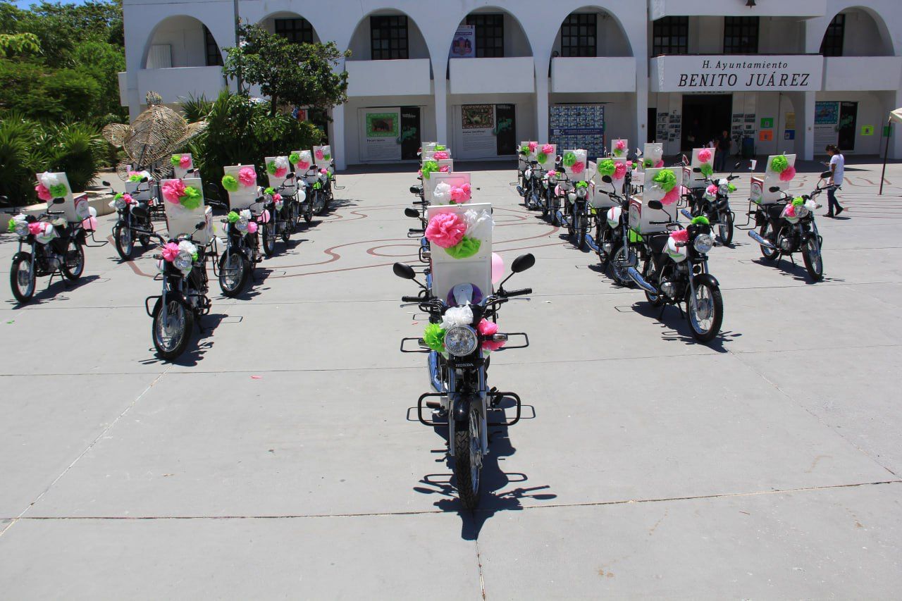 En este significativo evento, la directora de Relaciones Públicas del Ayuntamiento, Aurora Aguilar Rivero, en representación de la Presidenta Municipal, Ana Paty Peralta, atestiguó la entrega de 23 motocicletas equipadas con casco protector a igual número de operadores, que a partir de hoy, cuentan con la renovación del parque vehicular.