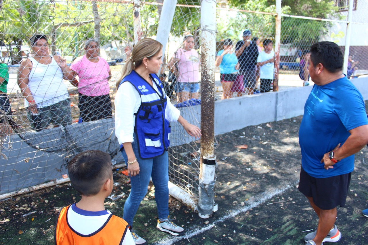 Manifestó que desde inicio del programa de “Pinta tu fachada”, los vecinos solicitaron a la presidenta la rehabilitación de la cancha de futbol, por lo que hoy verificó el avance con la malla de esa área. “Quedamos con la presidenta municipal que se atenderán también las porterías; además, hicimos el compromiso de techar las gradas para que los papás puedan ver jugar a sus hijos”.