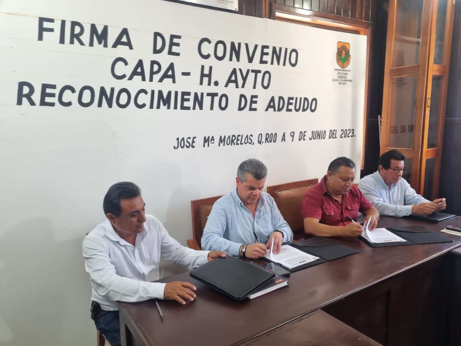 José María Morelos.- La Comisión de Agua Potable y Alcantarillado (CAPA) y el Ayuntamiento de José María Morelos, signaron convenio de reconocimiento de adeudo, como resultado de los esfuerzos de coordinación entre el Gobierno del Estado con los gobiernos municipales, para promover la regularización de compromisos que redundan en justicia social y mejora de los servicios.