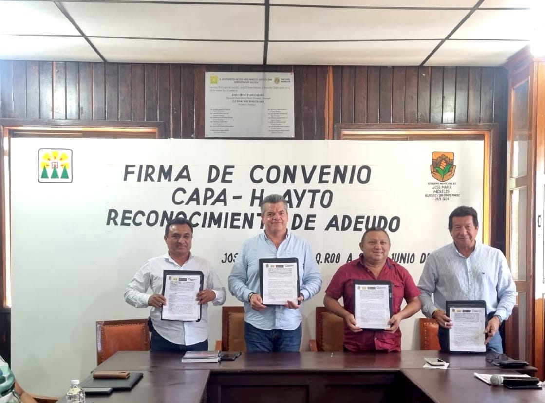 El evento fue encabezado por el director general de la CAPA, Alberto Covarrubias Cortés y el presidente municipal de José María Morelos, Erik Noé Borges Yam, donde se destacó el interés de la actual administración municipal, por regularizar el adeudo de un servicio tan indispensable como es el agua potable; y además poner el ejemplo para los otros municipios del Estado.
