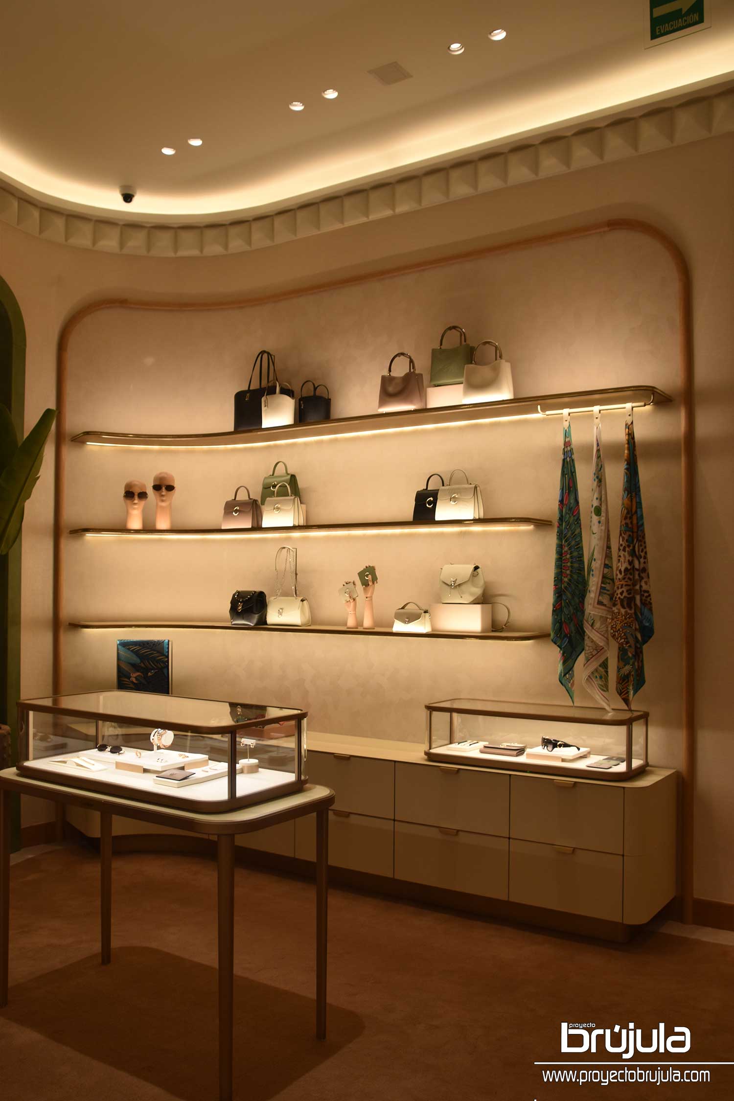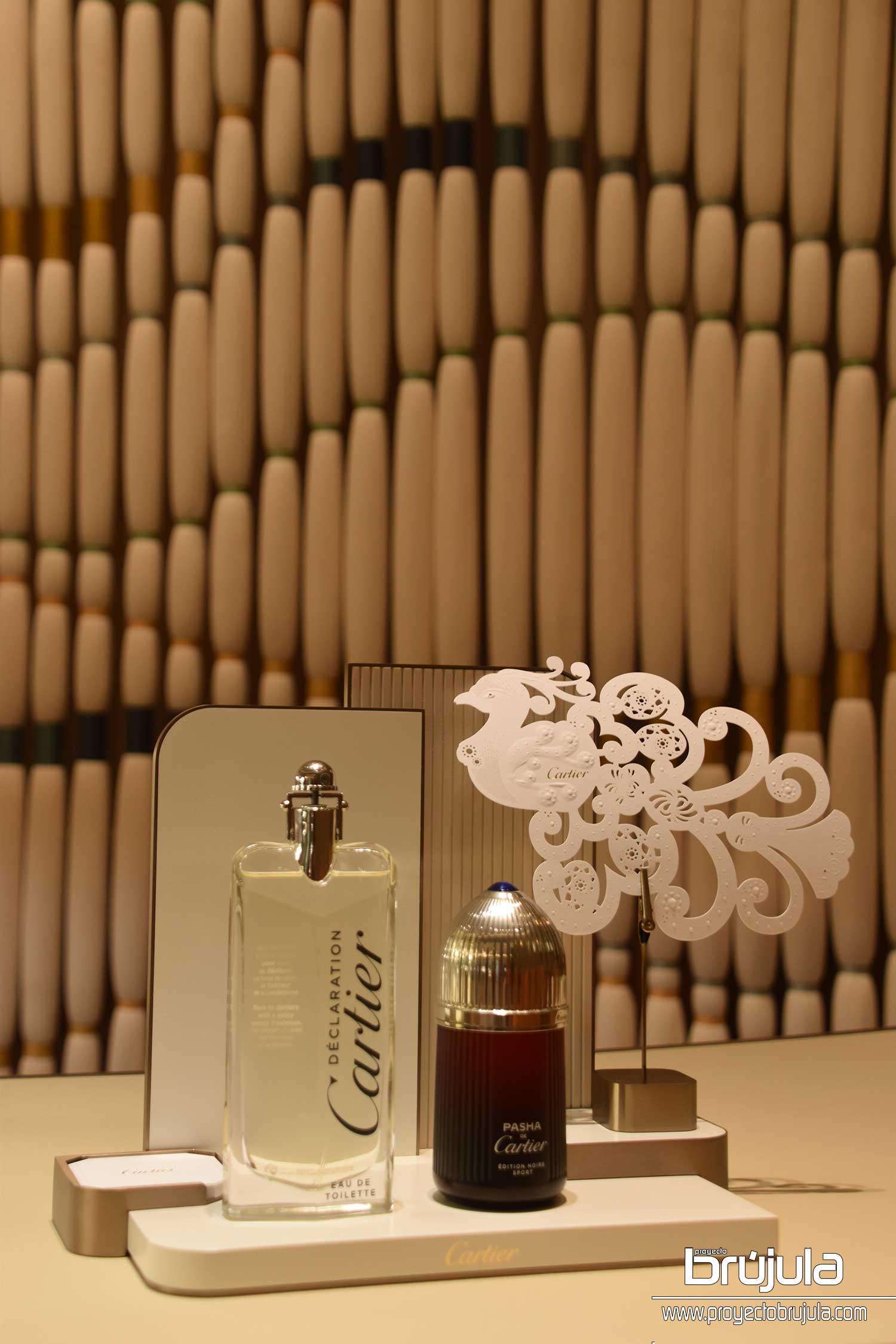Los picots de colección Clash de Cartier recorren paredes y techos, fusionándose con los patrones tradicionales de las fachadas mexicanas. En el espacio nupcial, la artista mexicana Caralarga interviene con una propuesta artesanal elaborada con materiales crudos de la naturaleza, representando el arte local de Cancún. Sin olvidar cada objeto que compone la boutique y en colaboración con Joel Escalona; diseñador mexicano, los muebles que decoran el espacio conciben y reafirman el lujo en forma de precisión, silencio y elegancia discreta.