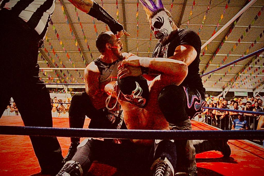 Entre tanto, en una confrontación en modalidad de relevos australianos con dos tercias rudas, Tóxico, Infierno y el yucateco Guerrero Dragón, le ganaron al equipo conformado por el Duende Maya, Rey Chacal y el también oriundo de Mérida, Fuerza Maya.
