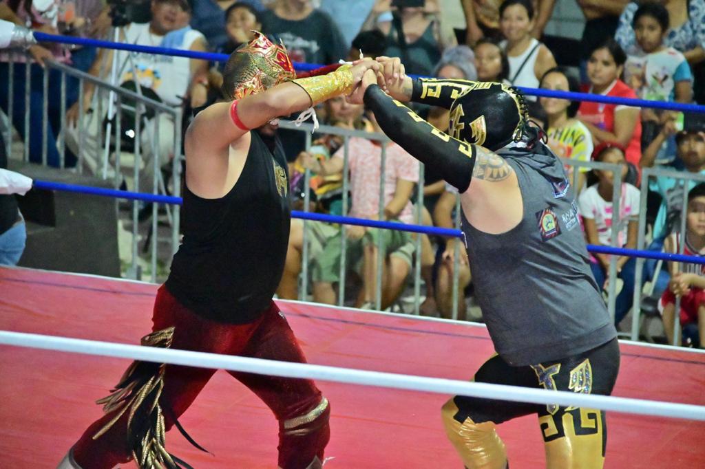Además de esta lucha, los solidarenses también disfrutaron del triunfo del joven sensación quintanarroense Guerrero del Futuro Jr. y el ídolo de la lucha de fantasía Chikitín, quienes le ganaron a los malosos del Rey Espartano y Ángel de la Muerte, lucha a dos de tres caídas sin límite de tiempo.