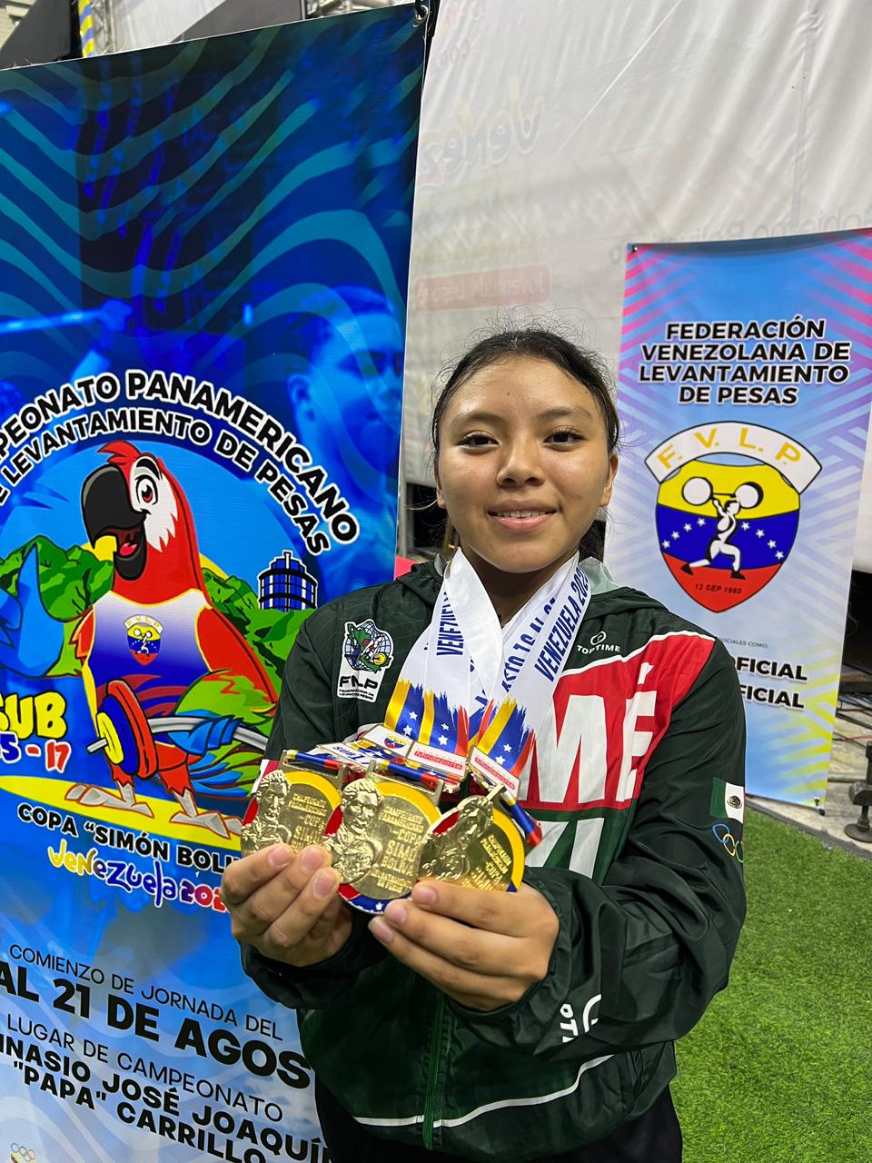 Caracas, Venezuela; 19 de agosto 2023.- Los pesistas quintanarroenses Andrea Sak Nik-Té Uitzil, Alexis Lara y Maximiliano Reyes tuvieron una brillante participación en el “IWF 2023 Campeonato Panamericano Juvenil” de levantamiento de pesas, esto al aportar un total de siete preseas (seis oros y un bronce) para México, en acciones que se disputan en el Gimnasio “José ‘Papa’ Carrillo” de Caracas, Venezuela.