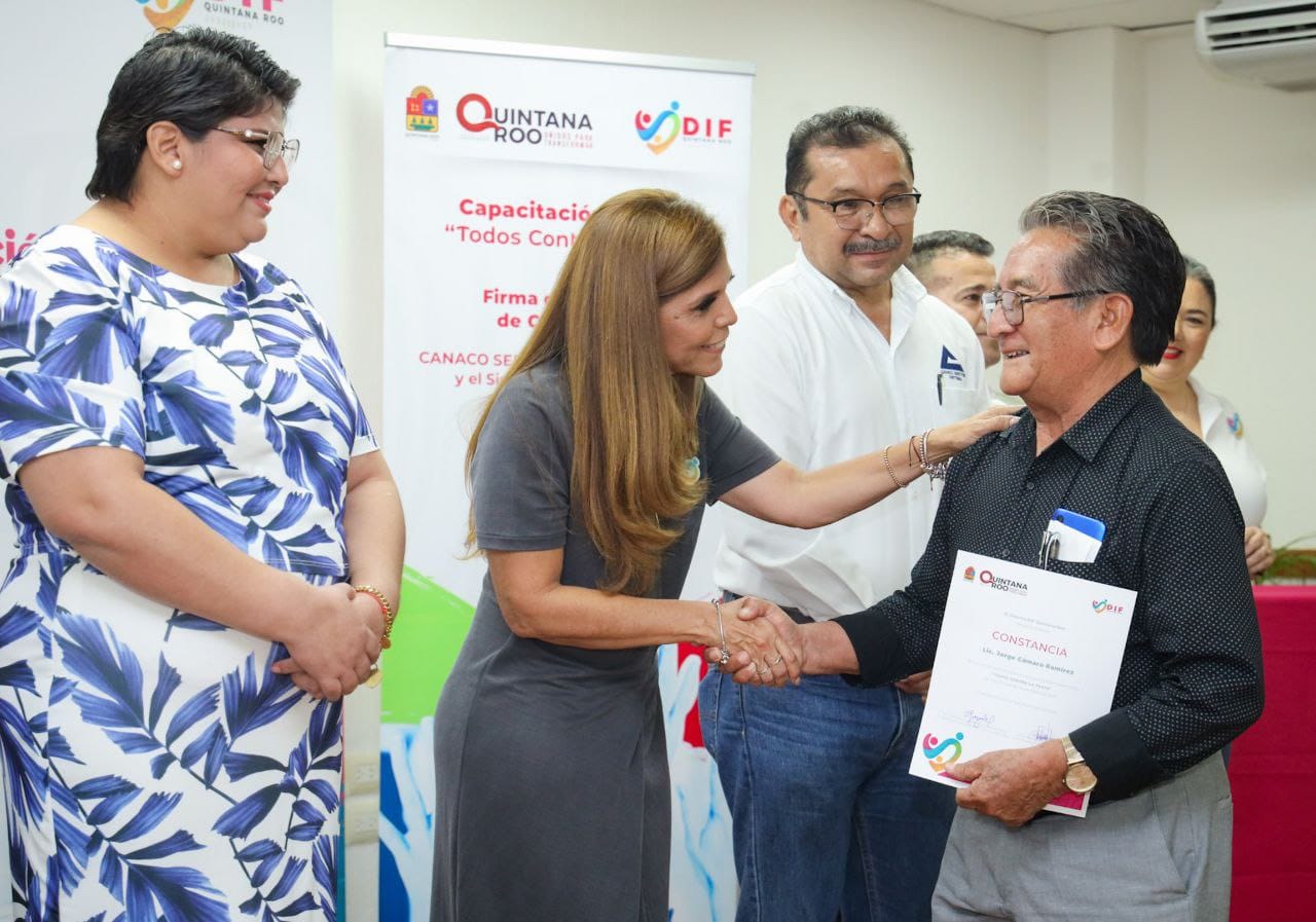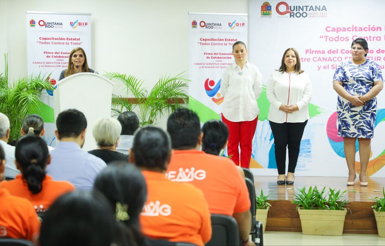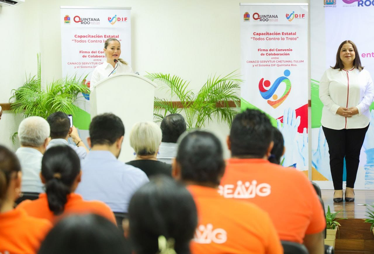 – Formaron Convenio de Colaboración la CANACO SERVYTUR Chetumal-Tulum y el Sistema DIF Quintana Roo para que servidores públicos identifiquen, prevengan y fortalezcan la erradicación de este delito