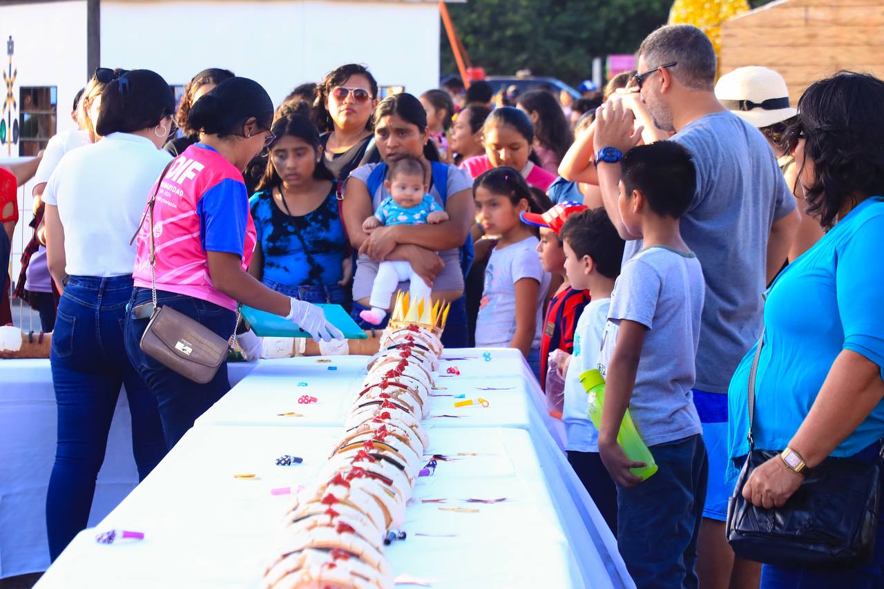 De igual forma, autoridades municipales acompañaron a la presidenta Lili Campos a la villa navideña ubicada en el recinto ferial, al festival de Día de Reyes, donde se repartieron 50 metros de rosca acompañada de chocolate y champurrado, así como juguetes para las niñas y niños de este municipio.