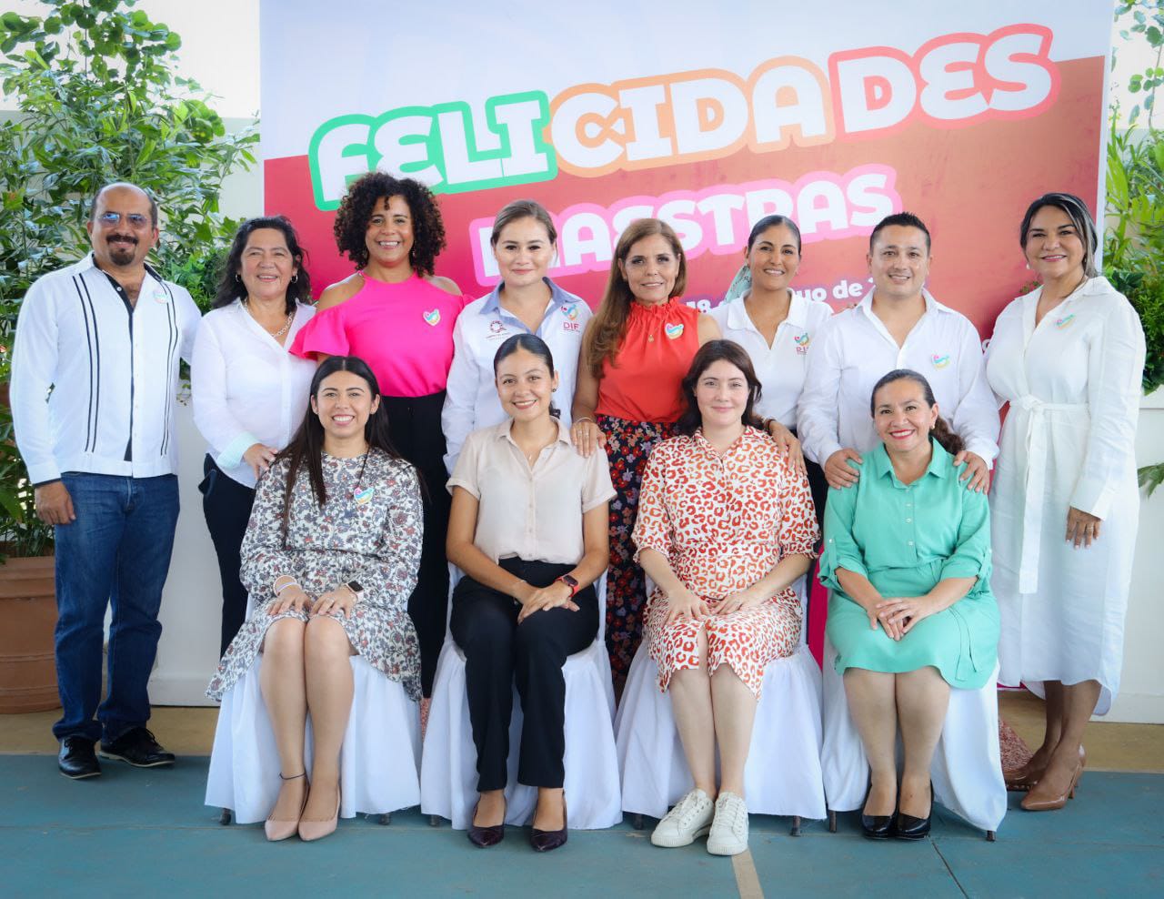 Chetumal.- En el marco de la celebración del Día de la Maestra y del Maestro, la Presidenta Honoraria, Verónica Lezama reconoció a docentes de los Centros de Atención Infantil con un convivio por su gran labor en la educación de las infancias de la entidad.