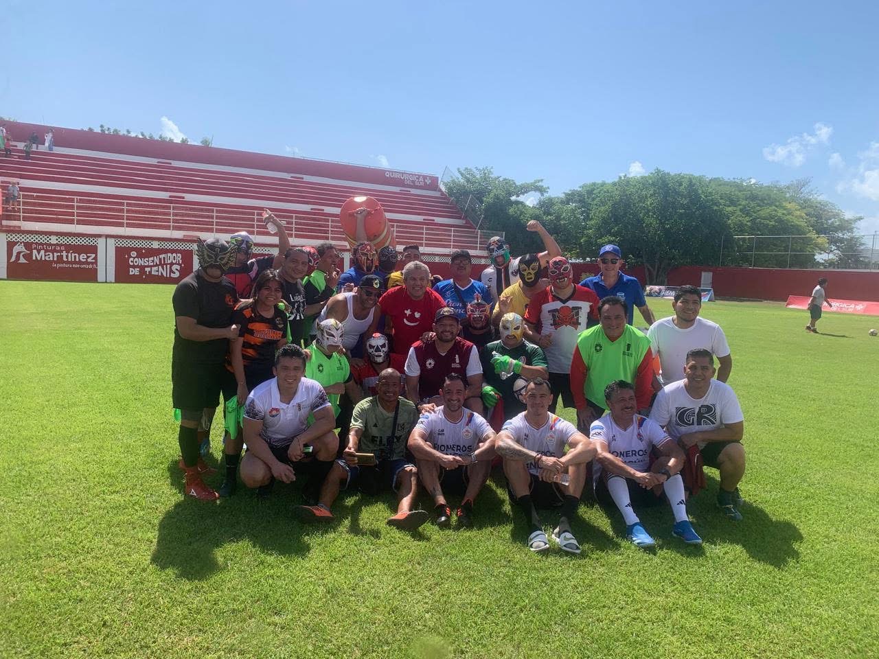 Cancún a junio.- Con un partido de fútbol en el estadio Cancun 86, funcionarios de Benito Juárez y directivos de los Pioneros de Cancún, junto con la Asociación de Cronistas Deportivos de Quintana Roo y los luchadores del pancracio local, celebraron el día la libertad de expresión y del periodista el pasado 7 de junio.