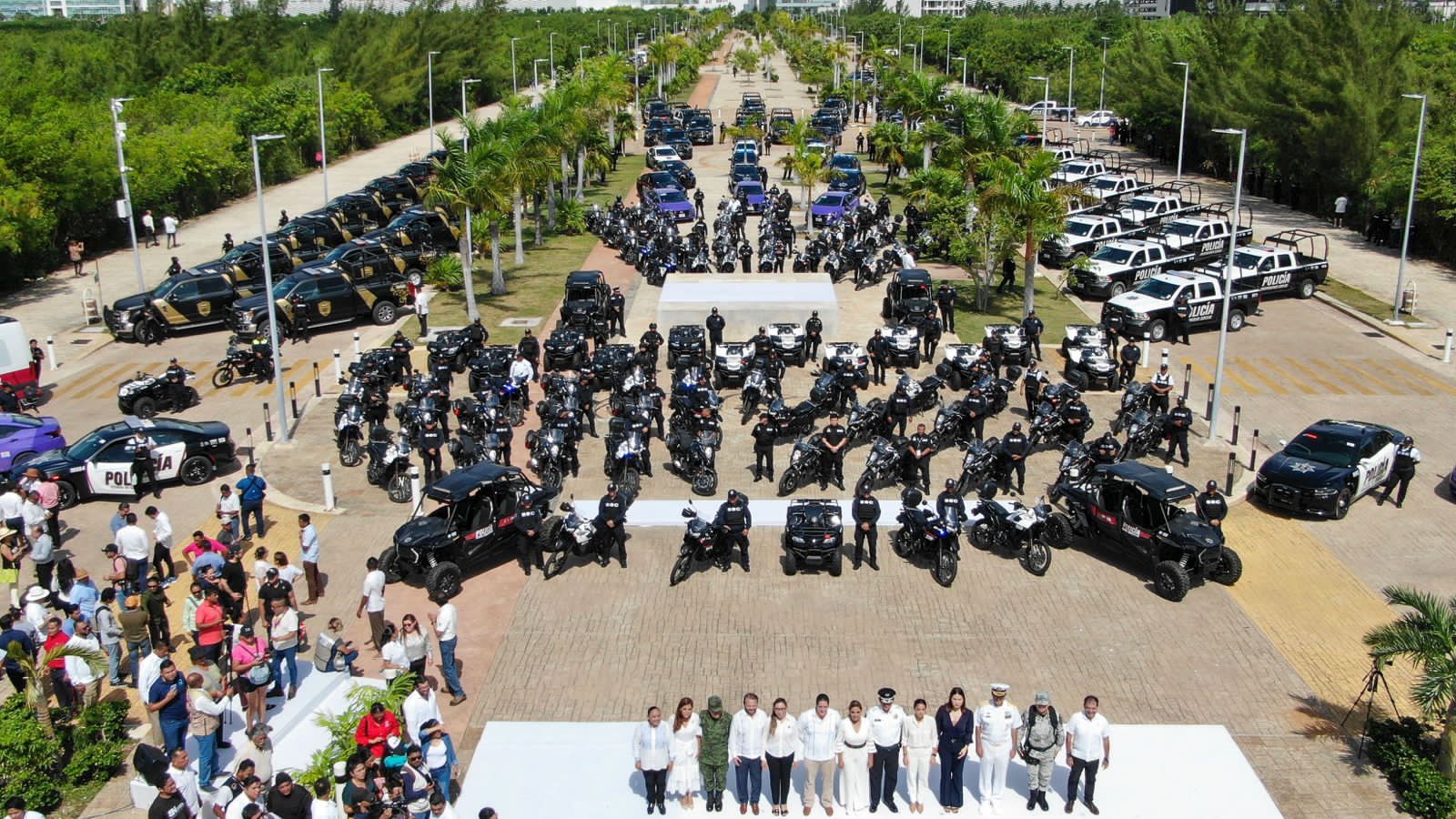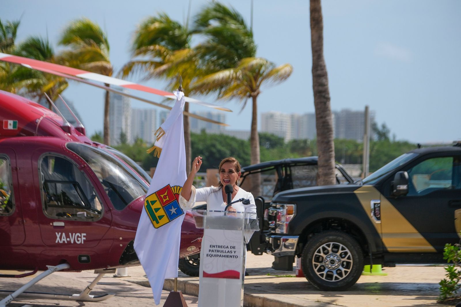 Cancún.- Con una inversión histórica de más de 2 mil millones de pesos la gobernadora Mara Lezama Espinosa entregó 689 unidades vehiculares, 507 chalecos balísticos y un helicóptero para el fortalecimiento de la Secretaría de Seguridad Ciudadana (SSC) para reforzar la construcción de la paz y la seguridad.