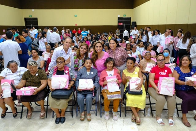 Chetumal.- Con el objetivo de mejorar la calidad de vida de las mujeres, la gobernadora Mara Lezama Espinosa entregó hoy 137 prótesis externas de mama y 268 brasieres ortopédicos a 134 mujeres de la zona sur sobrevivientes de cáncer de mama.