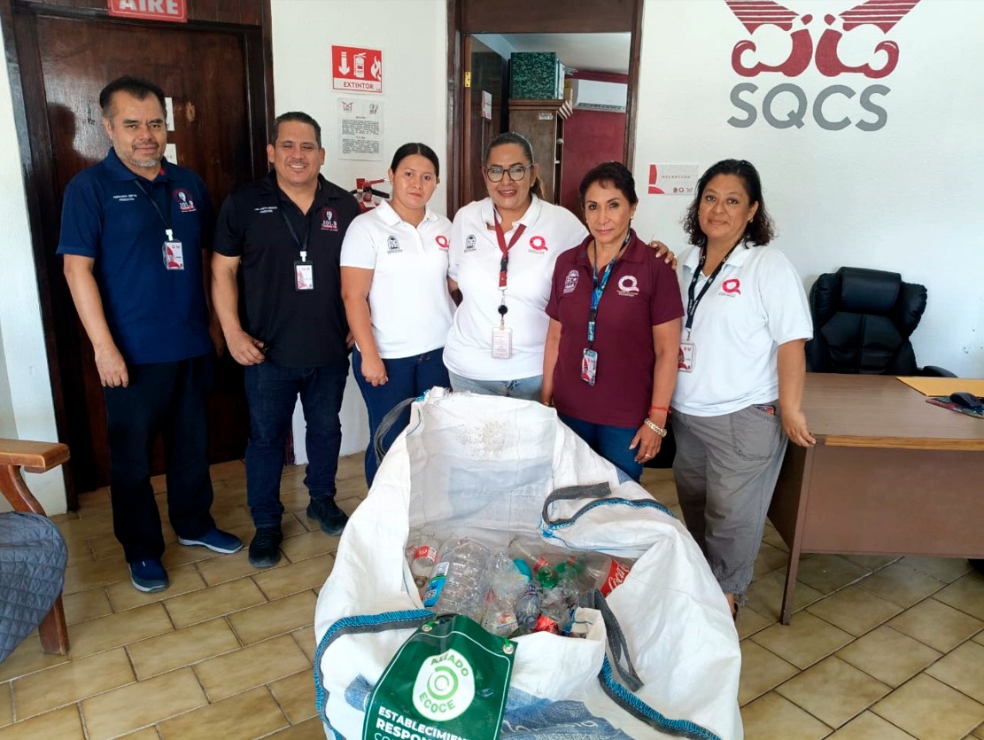 Chetumal.- Por tercer mes consecutivo personal del Sistema Quintanarroenses de Comunicación Social que encabeza Alma García Muñoz, se sumó a la campaña “Dejando Huella” logrando recolectar 46.1 kilogramos de residuos de PET y PEAD mismos que fueron entregados a la asociación civil ECOCE.