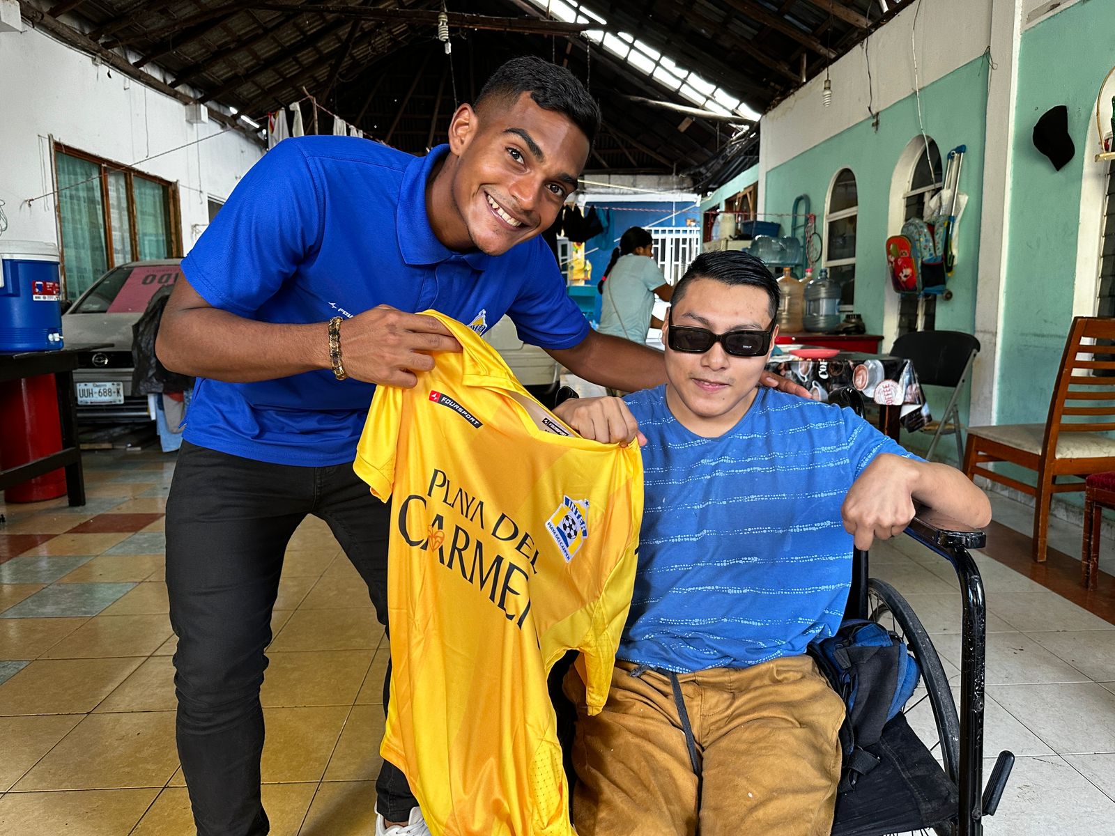 Por lo anterior, el jugador Diego Valanta visitó el hogar de Carlos Hoil Kuyoc, joven que padece distrofia muscular de nacimiento, pero que es fiel seguidor del “Equipo Gigante de Quintana Roo” y que asiste a cada partido de local y alienta desde su casa cuando el Inter Playa del Carmen juega de visitante.
