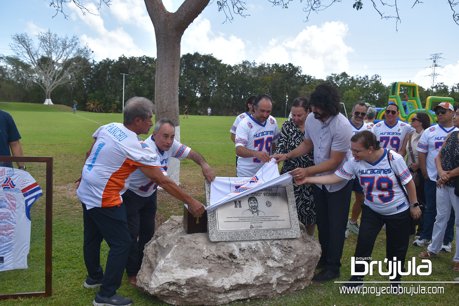 Al rayo del sol se efectuó el sentido homenaje en donde se nombró desde esa mañana a este campo deportivo con el nombre del coach, asimismo se realizó la develación de una placa en reconocimiento a su trayectoria en la Salle Cancún, depositando sus cenizas en un acto simbólico al pie de un árbol como símbolo de su legado eterno.