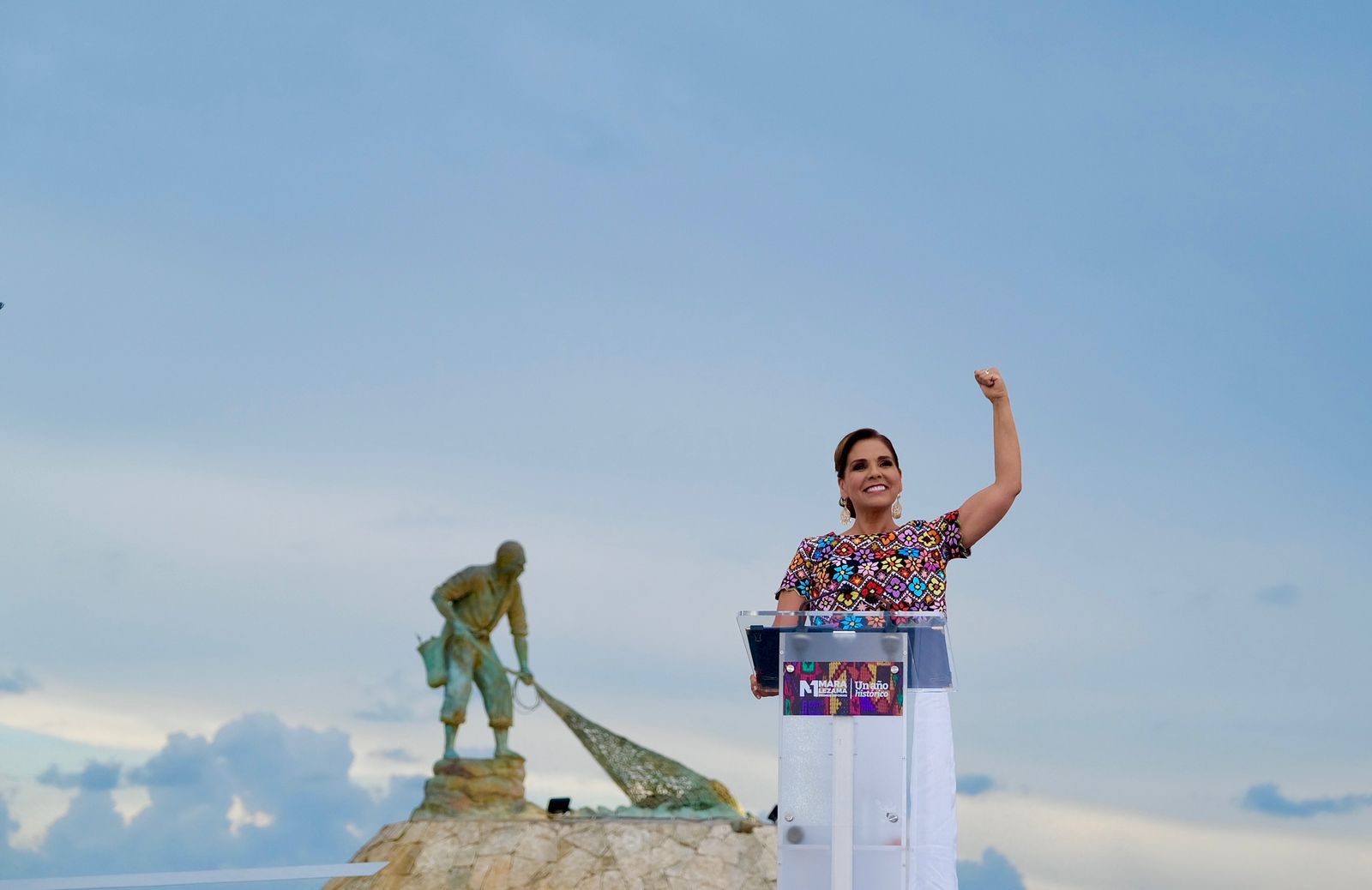 Ante miles de quintanarroenses que la acompañaron en la Fuente del Pescador, símbolo donde inicia México en esta capital de Quintana Roo, la Gobernadora hizo un recuento de logros en este año histórico con resultados tangibles para la ciudadanía a pesar de la deuda monumental de 20 mil millones de pesos heredada de gobiernos pasados y una deuda de corto plazo a proveedores de casi 7 mil 500 millones de pesos que prácticamente había paralizado la gestión.