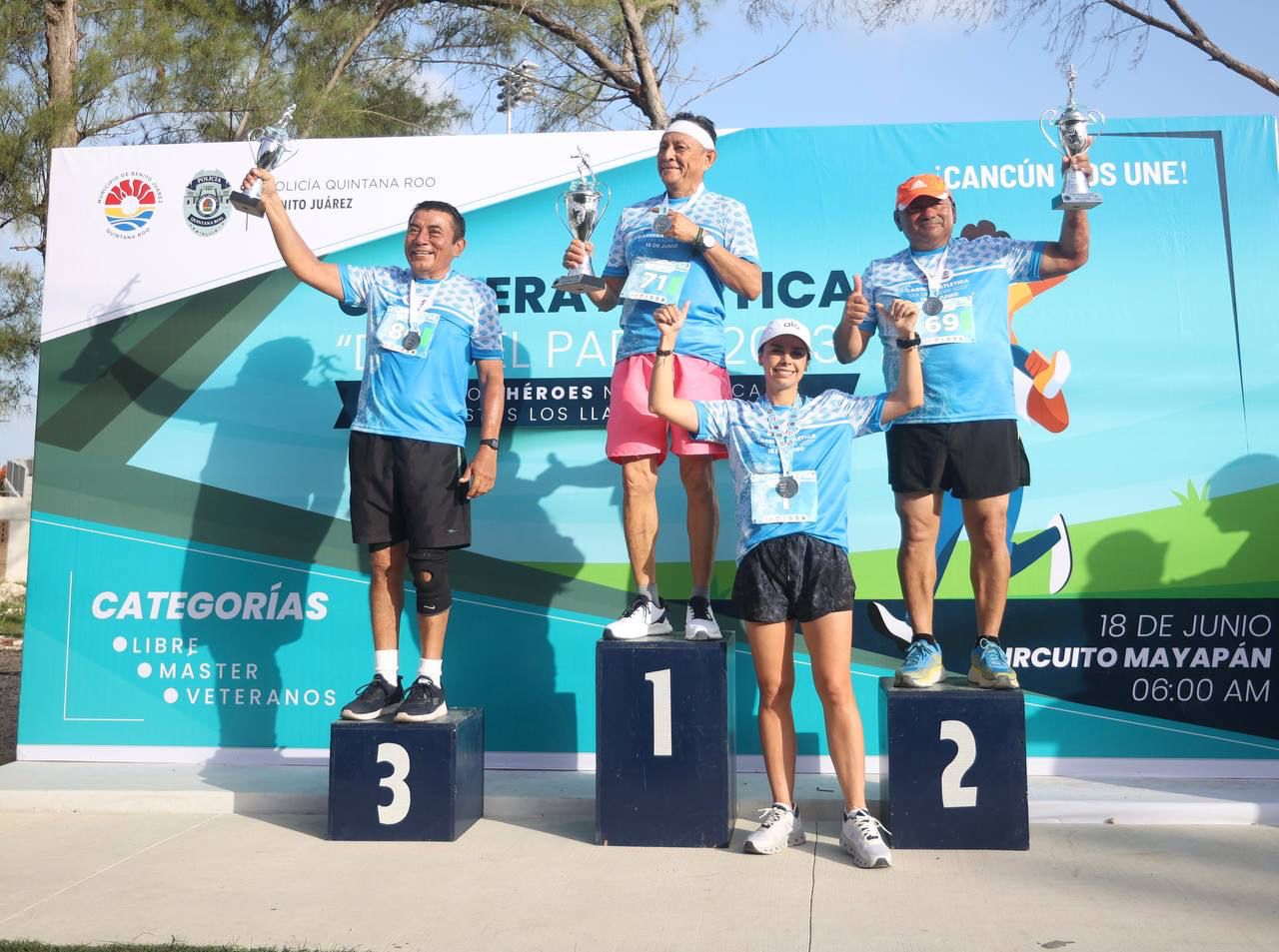 “Estoy contenta de festejar este día del padre con todos ustedes, policías, hombres que admiramos muchísimo y reconocemos la gran labor que hacen por esta ciudad y todos los cancunenses”, expresó Ana Paty Peralta ante más de 150 participantes que desde temprana hora se encontraban listos para correr sobre la Av. Mayapán en la Supermanzana 21.