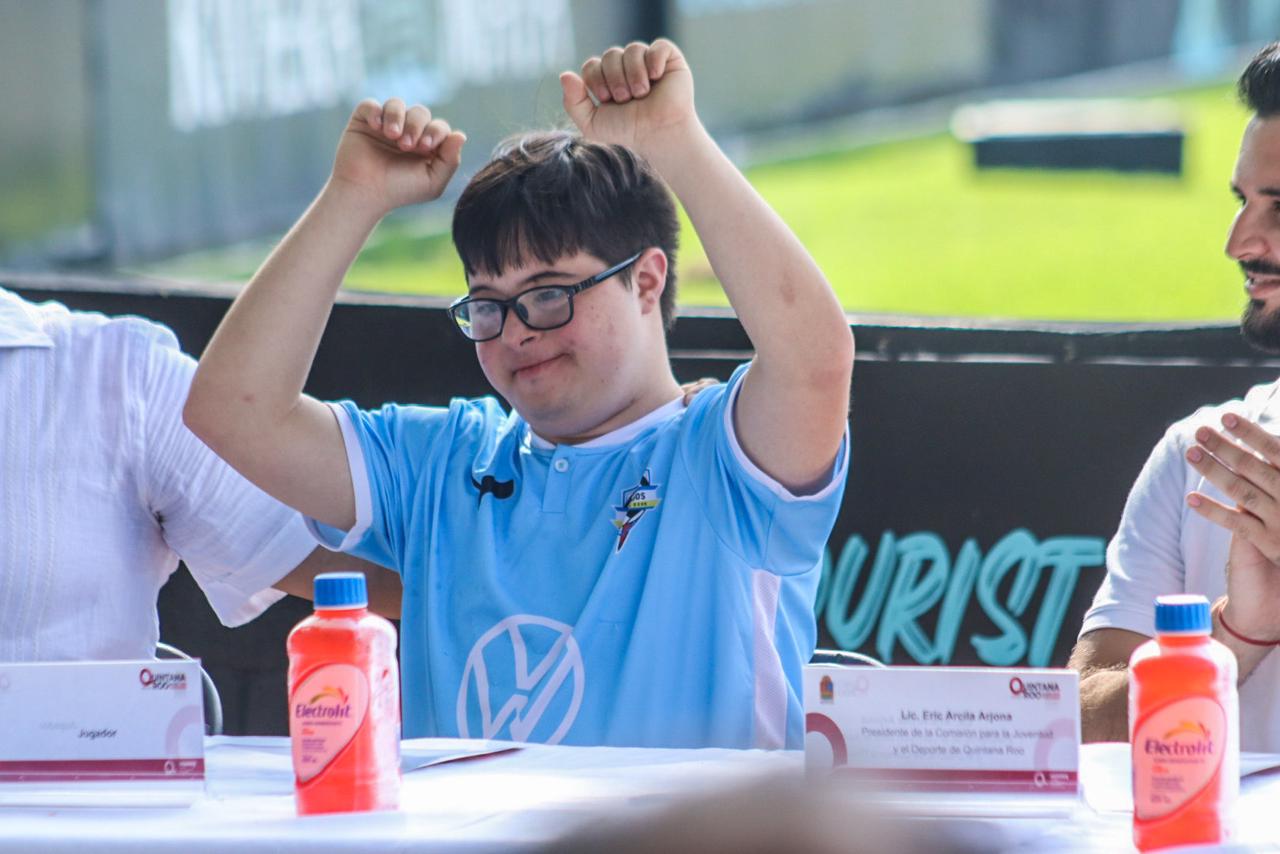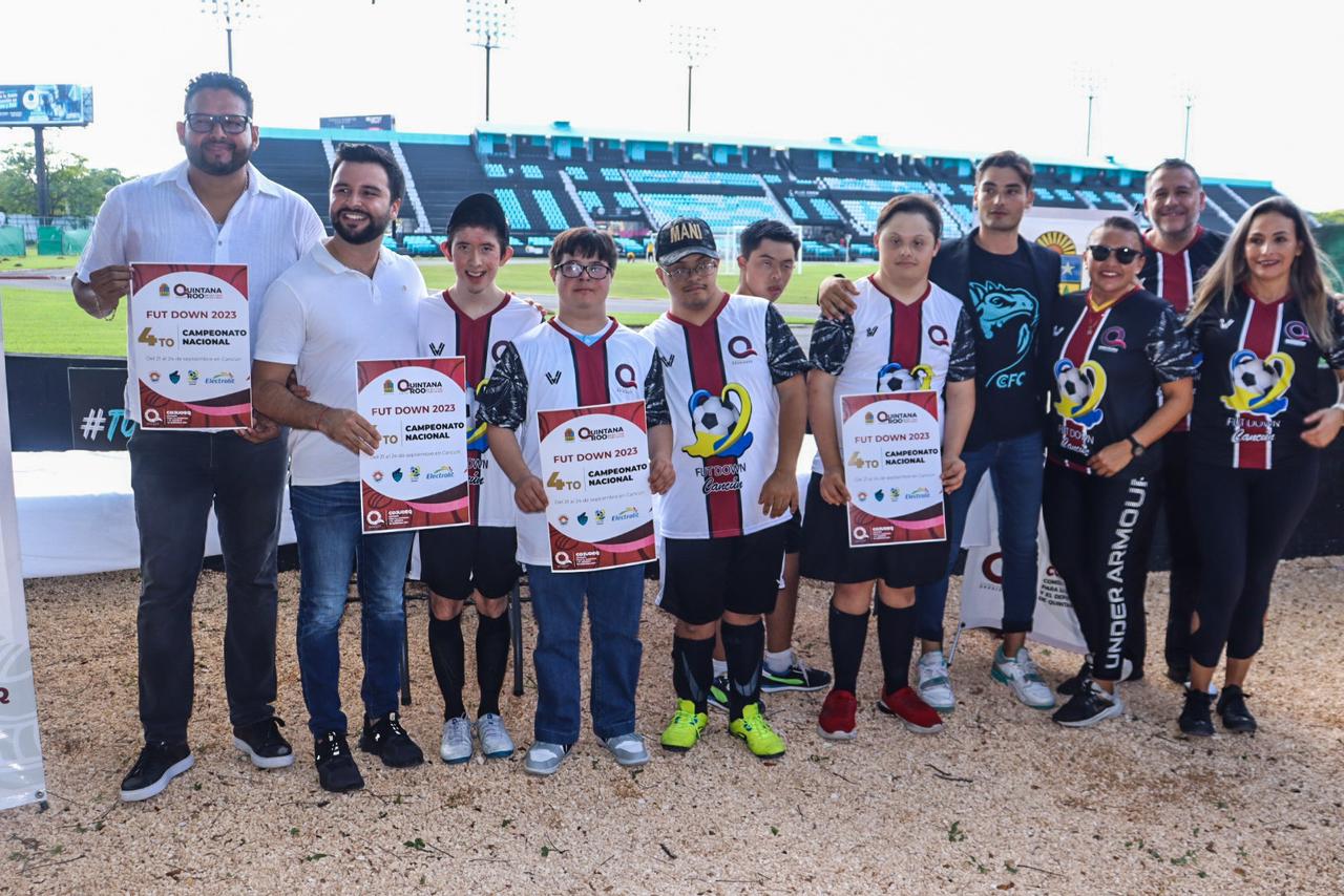 Cancún.- Esperando una participación de alrededor de 15 equipos de todo el país, siendo alrededor de 180 jugadores con síndrome de down, se realizará en Cancún la cuarta edición del “Campeonato Nacional Fut Down 2023”, a disputarse el del 21 al 24 de septiembre próximos, anunció en conferencia de prensa Eric Arcila Arjona, presidente de la Comisión para la Juventud y el Deporte de Quintana Roo (COJUDEQ).