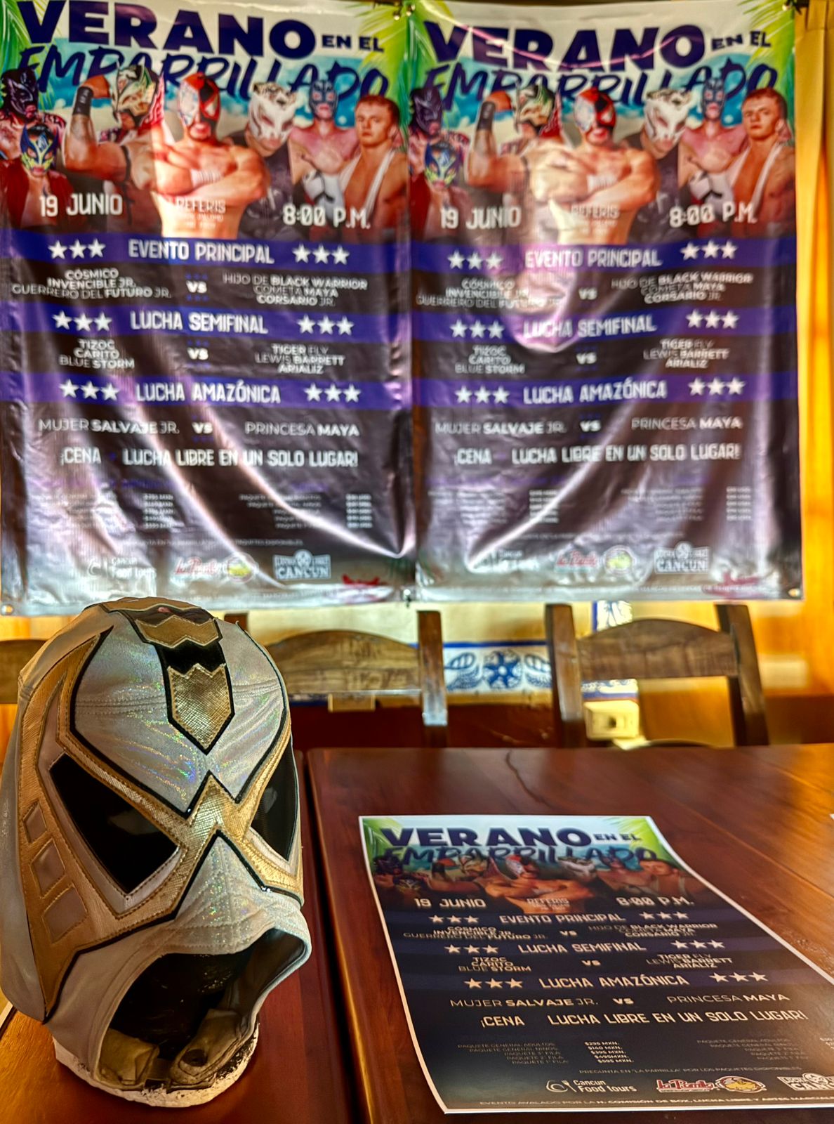 Cancún, Q. Roo a 10 de junio.- Primero fueron los Rhinoxxx Crash, posteriormente Gran Metalik, pero ahora serán cinco los luchadores invitados en el tercer -Jueves de Lucha- con motivo del 50 Aniversario del emblemático restaurante de comida mexicana La Parrilla de la avenida Yaxchilán, cuyo cartel ha sido bautizado con el nombre de “Verano en El Emparrillado”, el cual se llevará a cabo el próximo jueves 19 de junio en punto de las 20:00 horas.