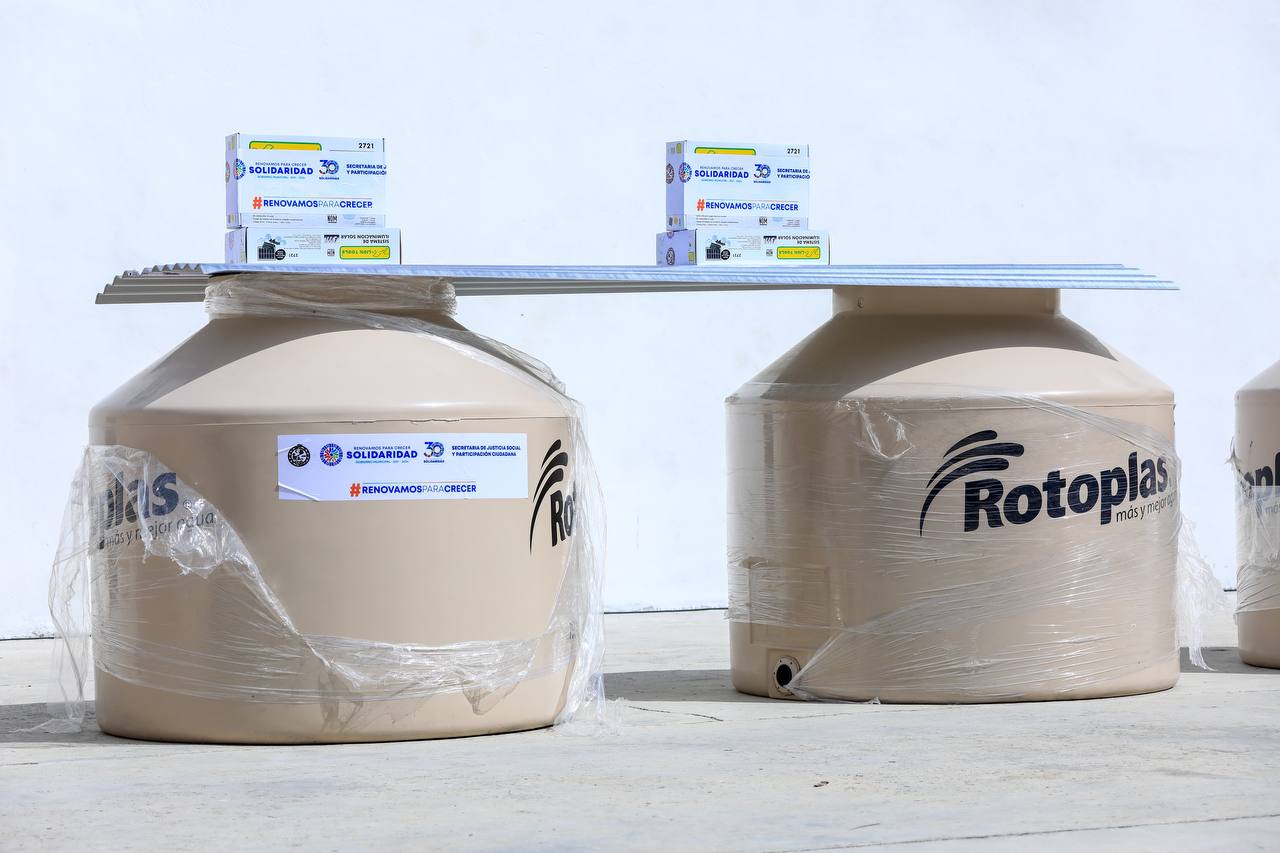 Por su parte, el secretario Santiago Chávez puntualizó que con la ayuda social en la colonia Cristo Rey serán beneficiadas un centenar de familias con la entrega de 49 tinacos, 35 láminas de zinc y 16 paneles solares, lo que les proporcionará bienestar, comodidad y mejor su calidad de vida.