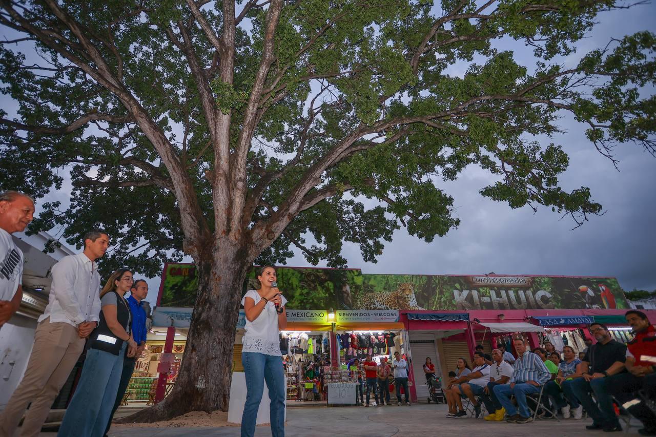 “Aquí al pie de esta preciosa caoba, quiero decirles que este lugar refleja muy bien la esencia de Cancún, representa fortaleza y unidad, porque a pesar de los años y de los retos que ha enfrentado nuestra ciudad, aquí sigue, en pie. Gracias al esfuerzo, al optimismo y al compromiso de esta comunidad de comerciantes, que ven en este lugar mucho más que su fuente de ingresos y eso es algo que les reconozco y les agradezco profundamente”, señaló.