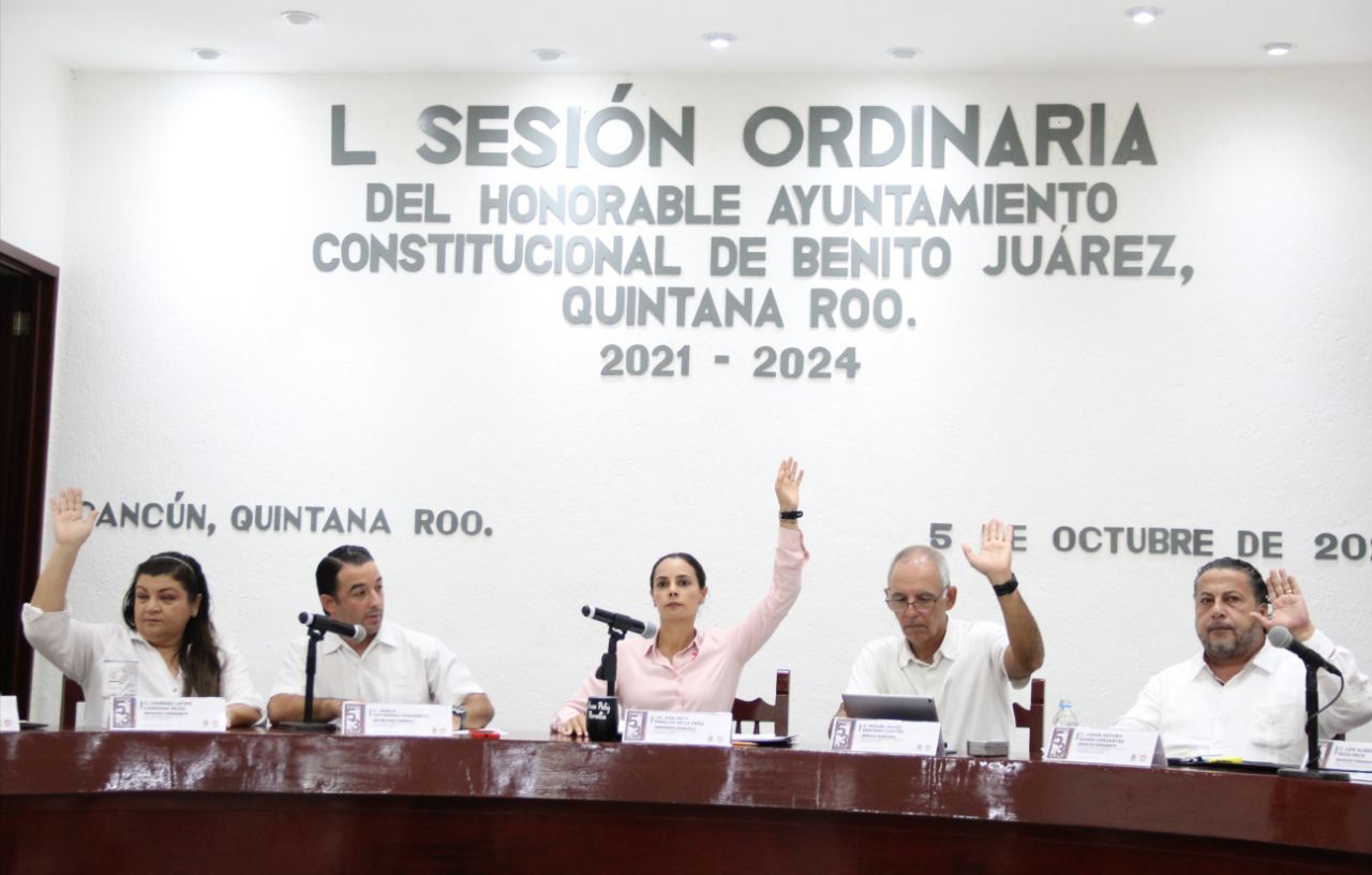 Cancún, Q. R., a 05 de octubre de 2023.- Con un enfoque integral en mejorar la ciudad con visión ecológica, el celebrarse la Quincuagésima Sesión Ordinaria, encabezada por la Presidenta Municipal, Ana Paty Peralta, el Cabildo de Benito Juárez aprobó por unanimidad celebrar diferentes acuerdos para mejorar el reciclaje de residuos sólidos, cuidar el Parque de la Equidad, promover la creación de huertos urbanos y evitar la contaminación auditiva en la ciudad.
