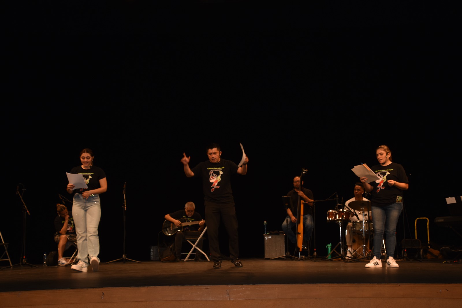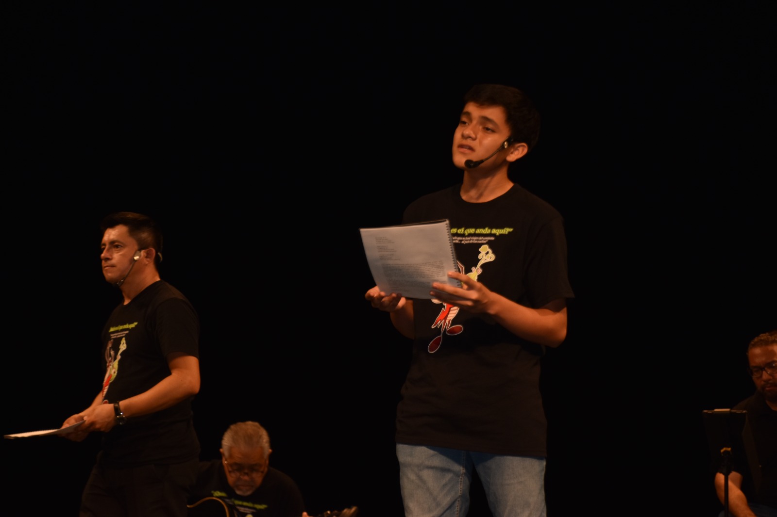 Esta mañana asistimos al ensayo del ensamble musical titulado “¿Quién es el que anda aquí?”, encabezado por el maestro Ismael Cituk, cantantes y músicos, más algunos bailarines que completarán el elenco.