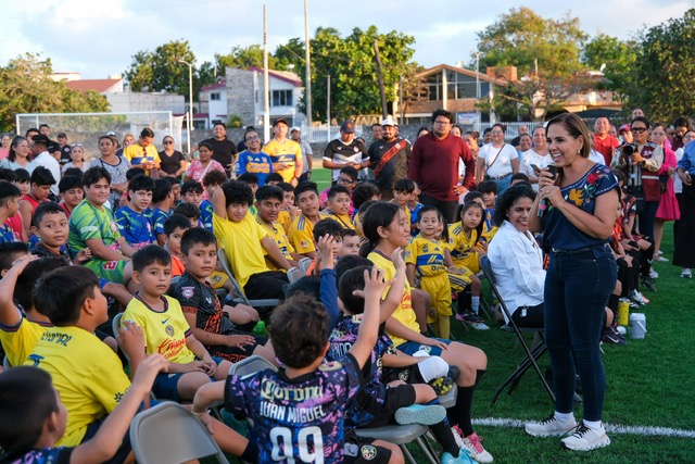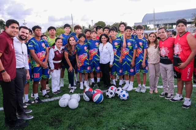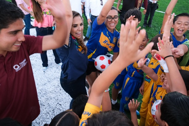 Mara Lezama les dijo que esto es posible porque este gobierno combate la corrupción y porque cree en el deporte. “Entonces vengo a entregarles su cancha, esta es su cancha, para que vengan a entrenar, para que vengan a dar lo mejor de sí, para que se conviertan en campeonas y campeones. Vamos a darle un fuerte aplauso a las chavas deportistas de femenil”.