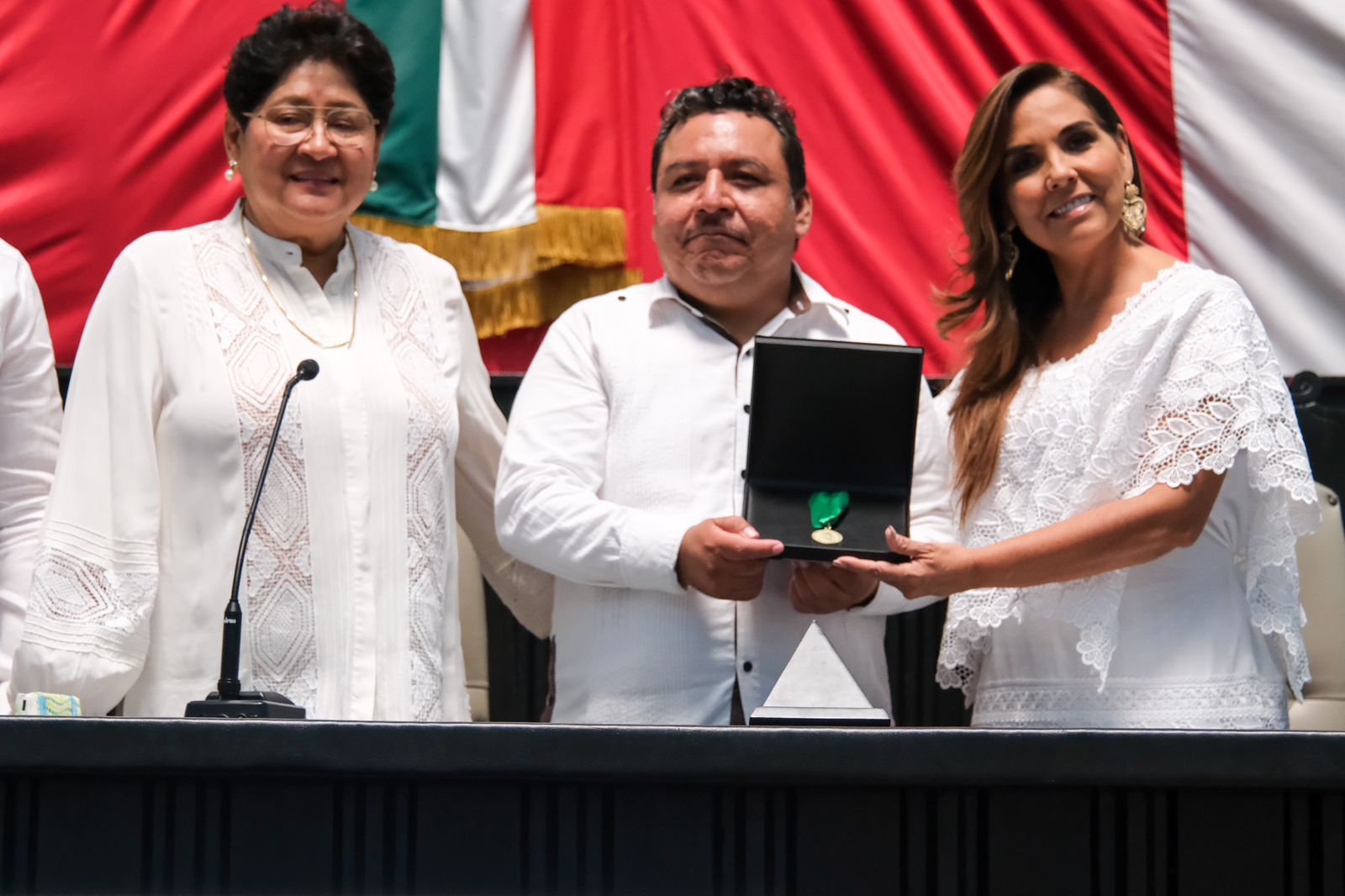 Chetumal. – En sesión solemne de la XVII Legislatura del Congreso del Estado, con la representación de los tres poderes, la gobernadora Mara Lezama Espinosa entregó la Medalla al Mérito Indígena Maya “Cecilio Chí” a Wildernain Villegas Carrillo, en reconocimiento a su contribución para la preservación de la etnia maya en la entidad.