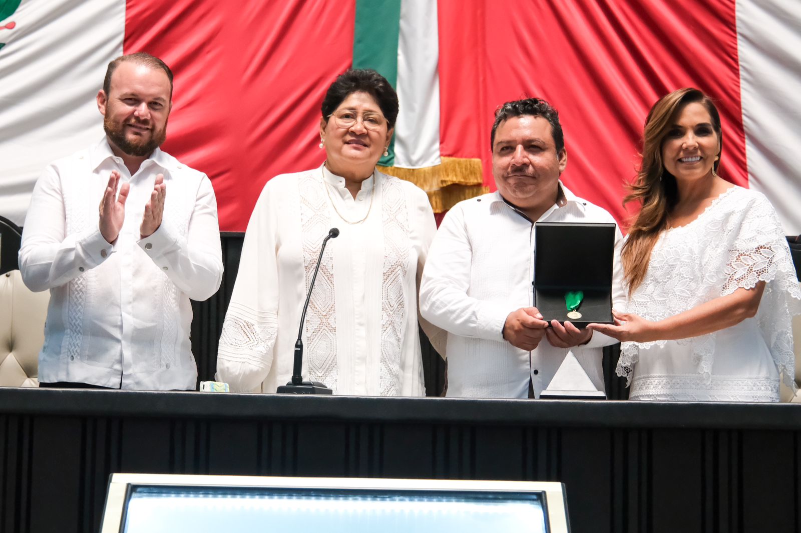 “Mis felicitaciones desde el fondo de mi corazón por esta merecida distinción y reconocimiento a tu trabajo de todos los días” expresó Mara Lezama desde la tribuna del Congreso después de escuchar las palabras del homenajeado que, con pasión y sentimiento de arraigo, agradeció su designación y exhortó a las nuevas generaciones a seguir el camino de la lucha de “Cecilio Chí”, por la paz y la dignidad, a través de la educación y la preparación.