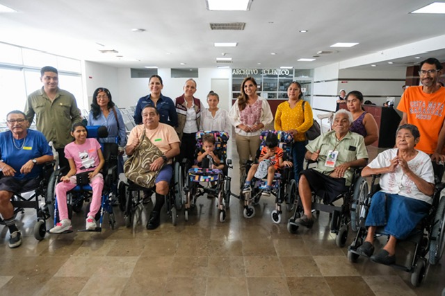 “En cada silla, en cada andadera, en cada bastón, hay una historia y las conocenos por lo general de las y los familiares de ellas y ellos” expresó la Gobernadora acompañada de Claudia Gómez Verduzco, directora de la Beneficencia Pública.