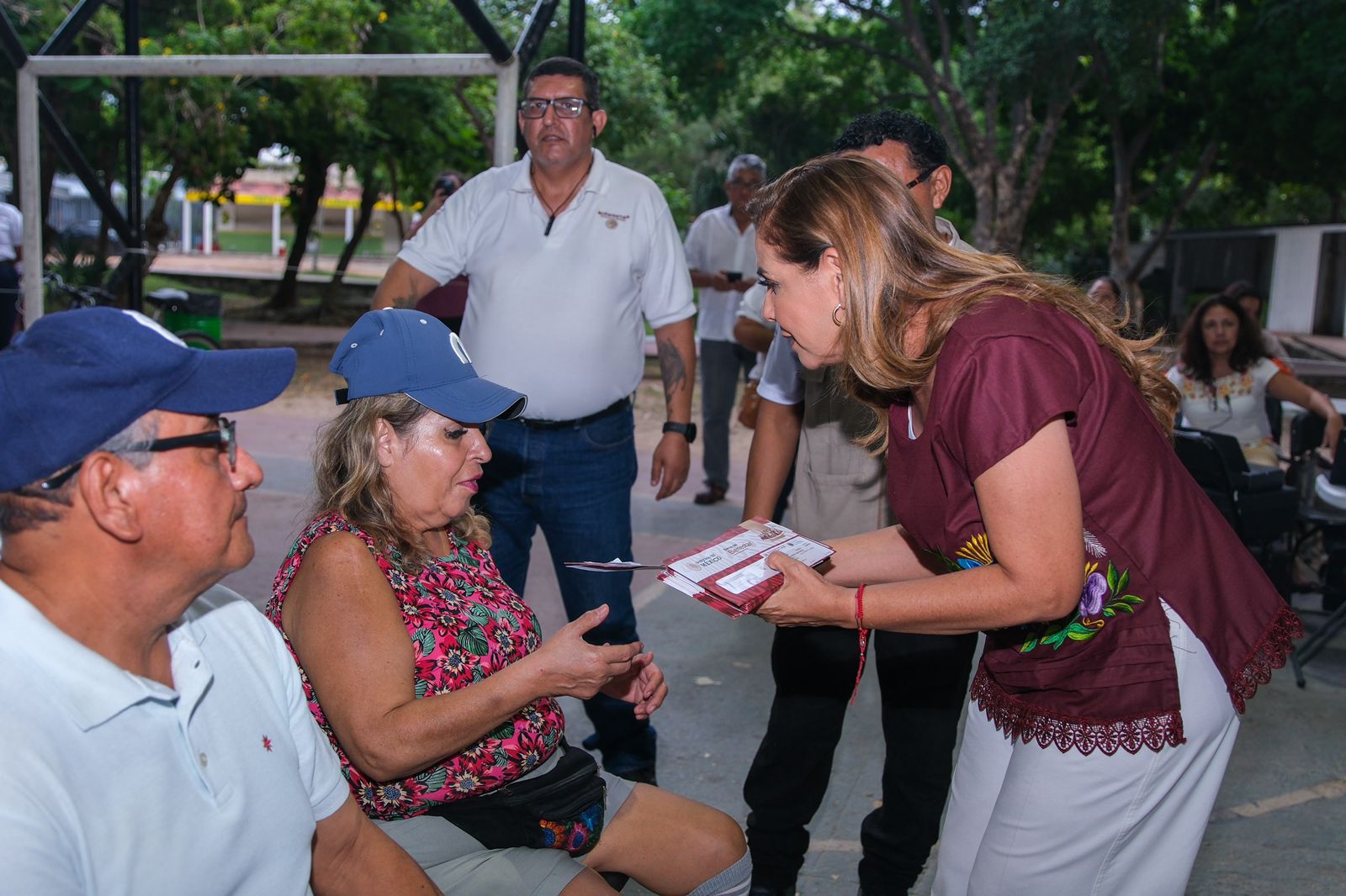 En el domo de la región 95 uno a uno y de forma directa, sin intermediarios, Mara Lezama entregó las tarjetas. “Estamos garantizando que nadie ande rasurando estos recursos en el camino, entre comisiones, intermediarios o gastos administrativos”, dijo.