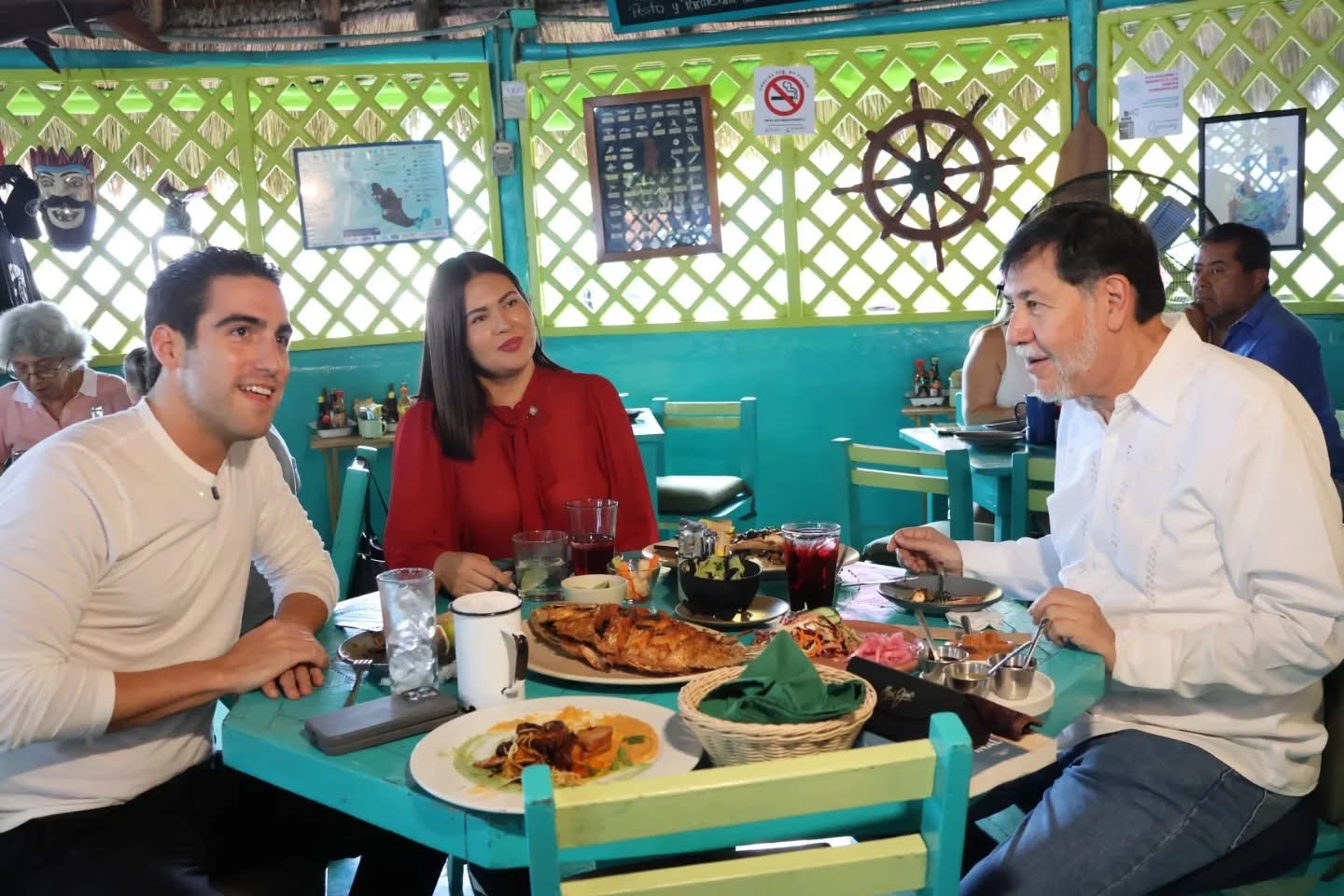 Cancún a febrero.- Durante la visita de Gerardo Fernández Noroña a Quintana Roo fue deleitado en el tradicional restaurante en Puerto Juárez con Estrella Michelin, el Kiosko Verde Marisquería. Acompañado de los los senadores Eugenio Segura y Anahí González.