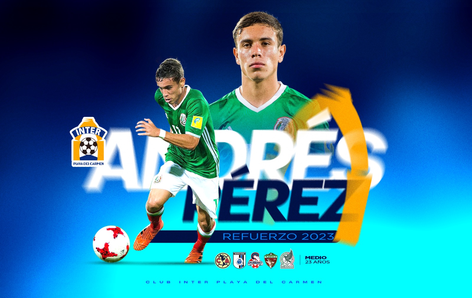 André Pérez Álvarez es el quinto refuerzo que se integra al plantel dirigido por Carlos Bracamontes, y que junto a Luis Alonso, Sergio Silva, Carlos López y Daniel Rojas, ya se encuentra realizando la pretemporada con Inter Playa del Carmen.