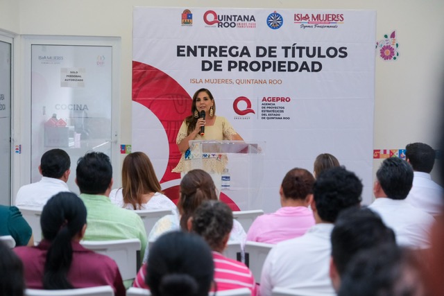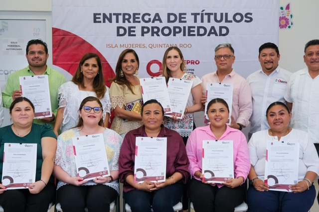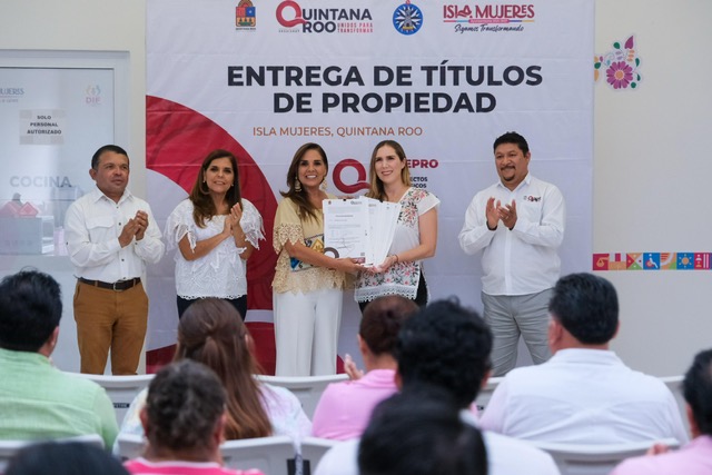 Isla Mujeres.- La gobernadora Mara Lezama Espinosa encabezó en Isla Mujeres la entrega de nueve títulos de propiedad al Ayuntamiento, formalizando la tenencia legal de espacios públicos estratégicos que promueven el desarrollo urbano, social y recreativo en beneficio directo de más de 13 mil habitantes.