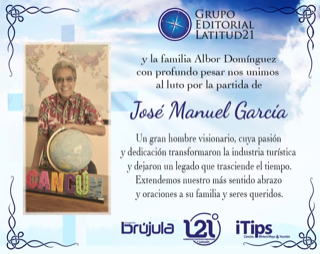 Cancún a enero.- Fallece Don José Manuel García Rebollo fundador de IVI DMC, Incentives and Vacations International, una agencia de viajes de turismo receptivo, que maneja grupos y convenciones desde hace 38 años.
