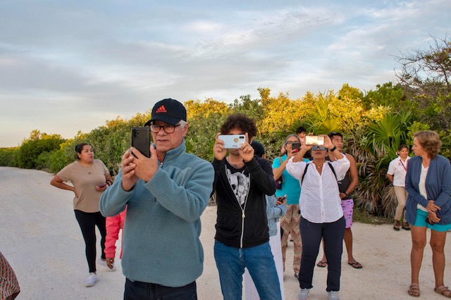 Posteriormente, la Fundación de Parques y Museos brindó a las y los asistentes un recorrido interpretativo en lanchas por la laguna Xtacún, para apreciar la riqueza natural de la reserva ecológica Laguna Colombia. Observaron el ojo de agua que se encuentra en las inmediaciones del islote, así como cientos de aves migratorias que han empezado a llegar al área, por lo que se hizo patente la reflexión acerca de la conservación medioambiental y en particular de las aves.