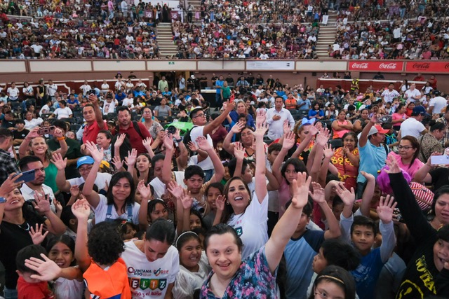Cancún.- La gobernadora Mara Lezama Espinosa, junto a la presidenta honoraria del Sistema DIF Quintana Roo, Verónica Lezama Espinosa, y la presidenta municipal, Ana Paty Peralta, celebraron a la niñez acompañados de sus familias el “Día de la Niña y el Niño”, en la Plaza de Toros de esta ciudad.